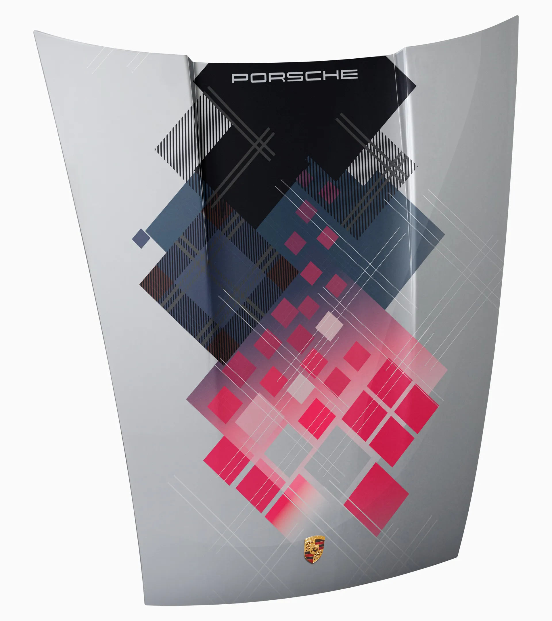 Un fragment de l’histoire Porsche pour votre maison : le capot avant au design de la Porsche 911 Turbo n° 1 est à la fois un objet de décoration exceptionnel et un tableau magnétique. L'écusson historique Porsche complète son design élégant et fidèle à l'original.