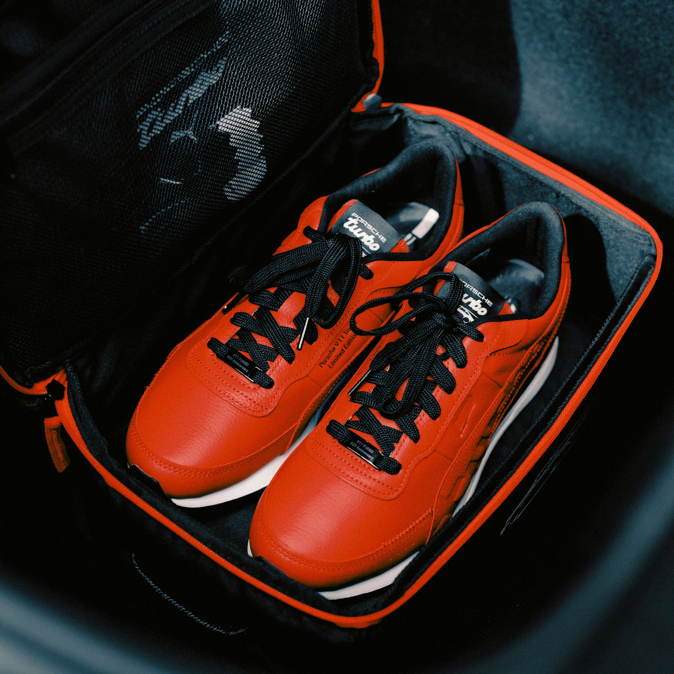 Exclusive sneakers from Porsche to celebrate the 50th 911 Turbo anniversary. With numerous design highlights and a stylish shoe bag.
