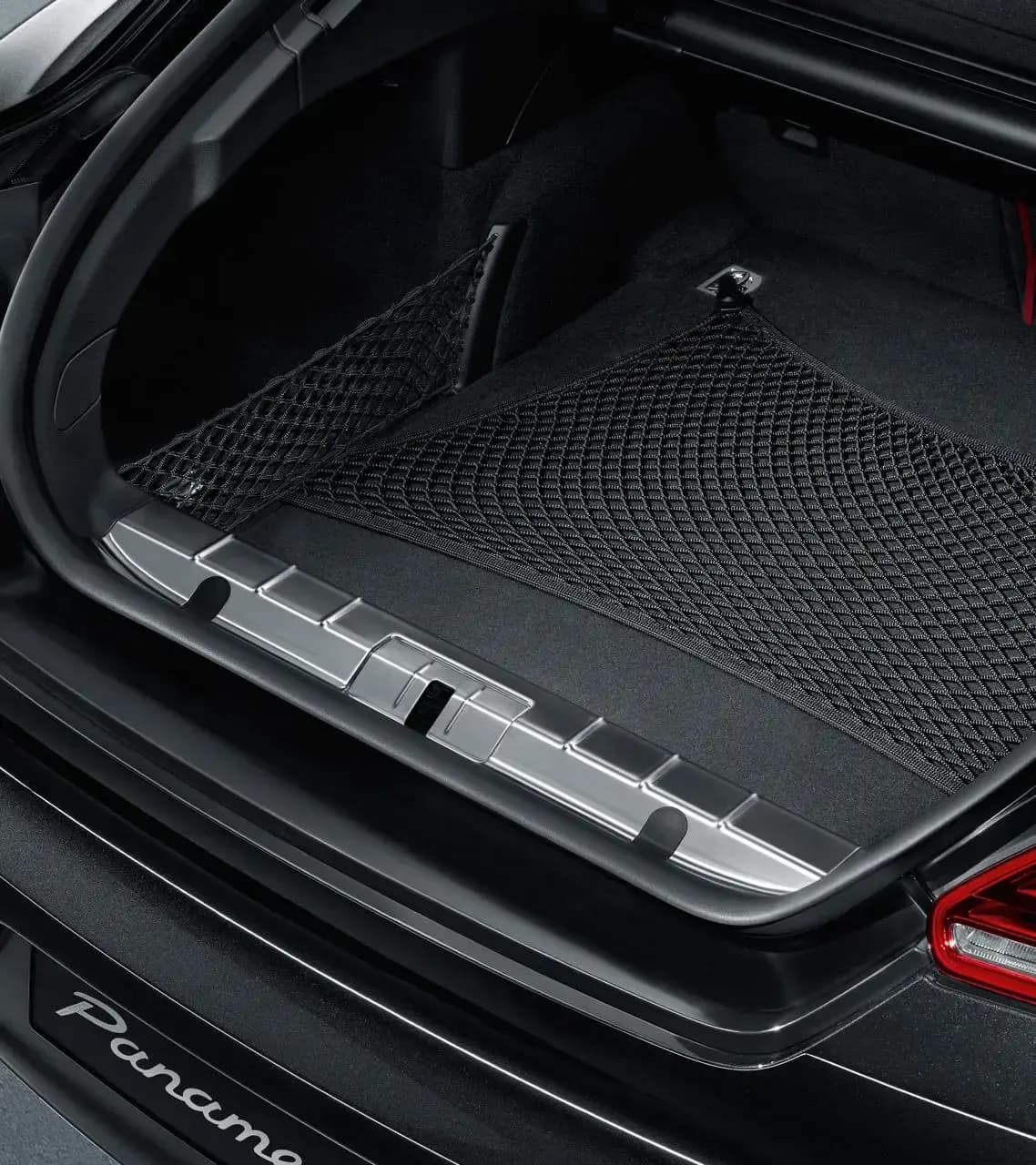 Increases safety of the loaded vehicle. The luggage net is attached to the floor of your Panamera's luggage compartment. With 4 integrated hooks for securing to the lashing points in the loadspace floor. Thanks to its elasticity, the net can be secured in different positions.
