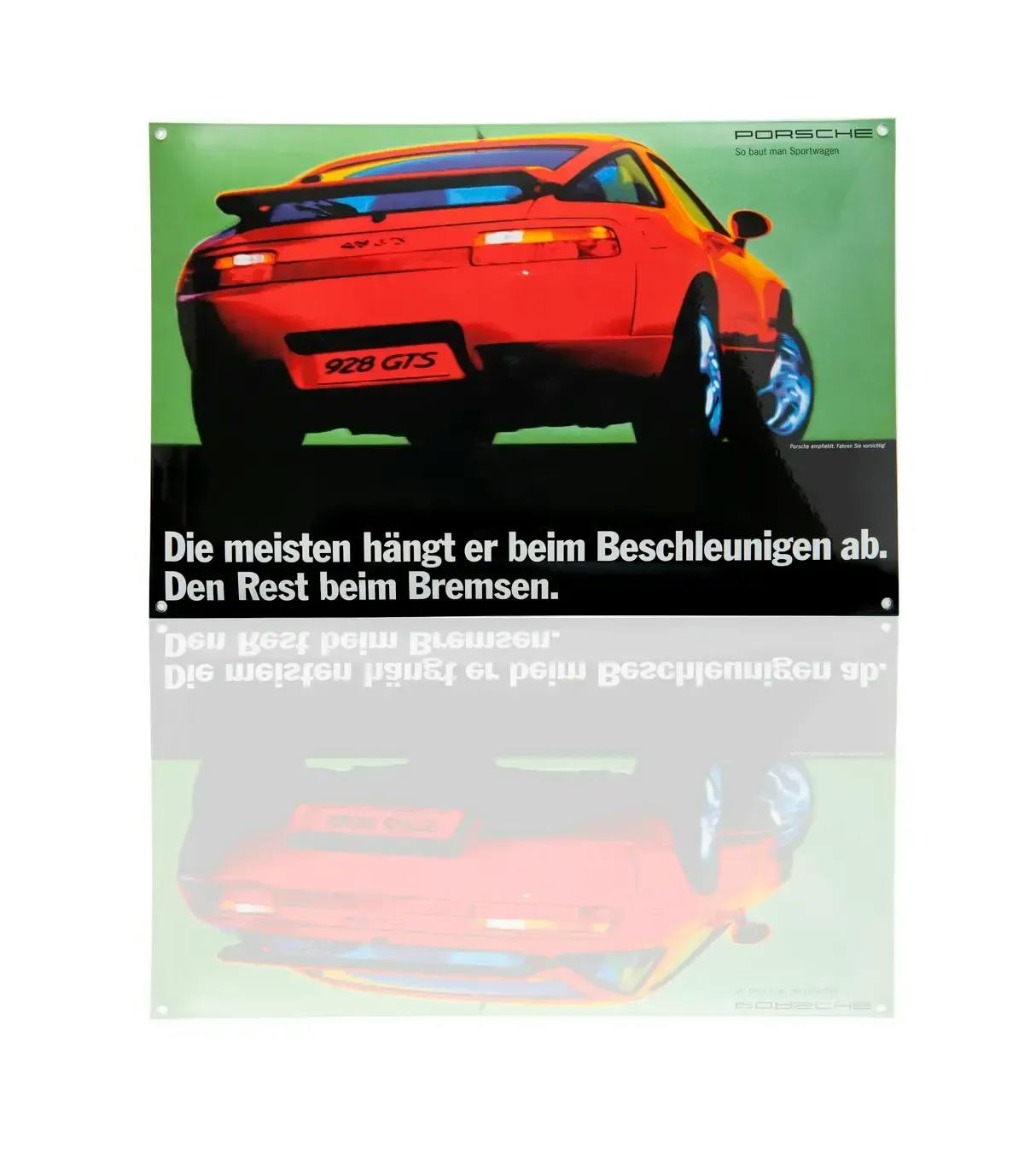 With the benefit of hindsight, we know which advertising messages of the past were particularly popular, and we have used this knowledge to produce a series of high-quality enamel signs displaying advertising messages from the early years. The 40x60 centimetre design weighs approximately 2.5 kilogrammes and has a convex shape, which makes it particularly stable. With their clear colours and high-gloss UV coating, the signs are not only long-lasting but also look like miniature works of art. These reproductions of advertising messages allow us to reacquaint ourselves with the most popular Porsche advertisements of all time. The world’s leading advertising agencies competed for the chance to dream up these clever slogans, many incorporating puns which still raise a smile today.