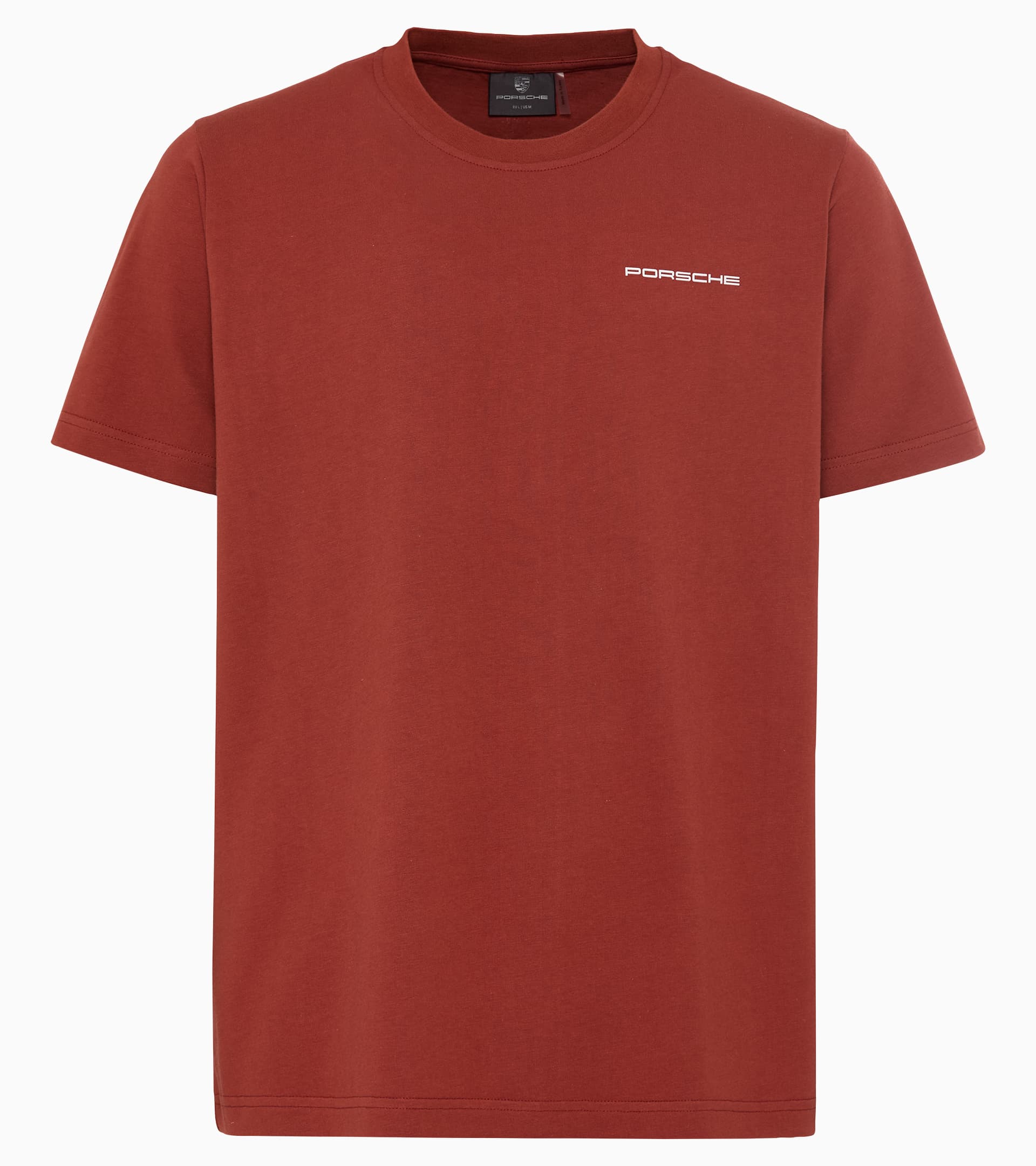 Crafted from premium 230 g/m2 cotton, the Porsche Maple Red Tee delivers a refined, structured silhouette with outstanding comfort and quality. Thoughtful detailing includes a raised silicone rubber print 'PORSCHE' logo on the left chest and a distinctive maple leaf raised silicone rubber print between the shoulder blades.