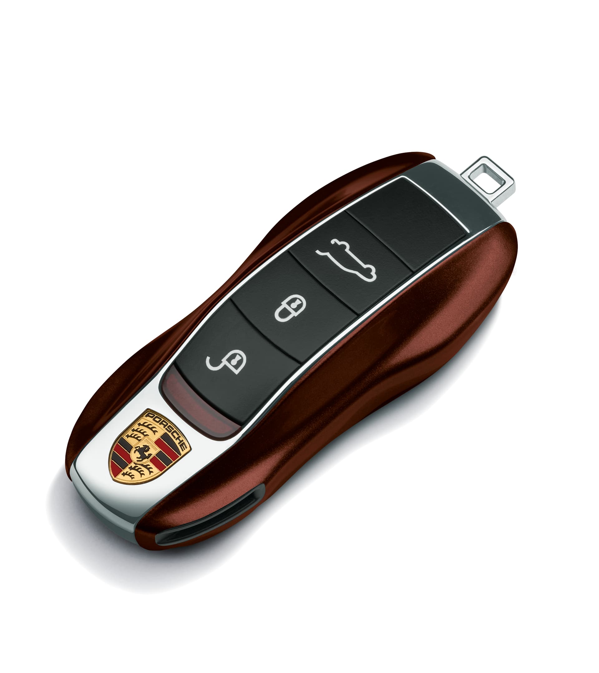 Une occasion unique de vous exprimer avec la clé de véhicule Porsche peinte en Acajou Métallisé. Un ensemble contient 2 couvercles de clé latéraux peints.