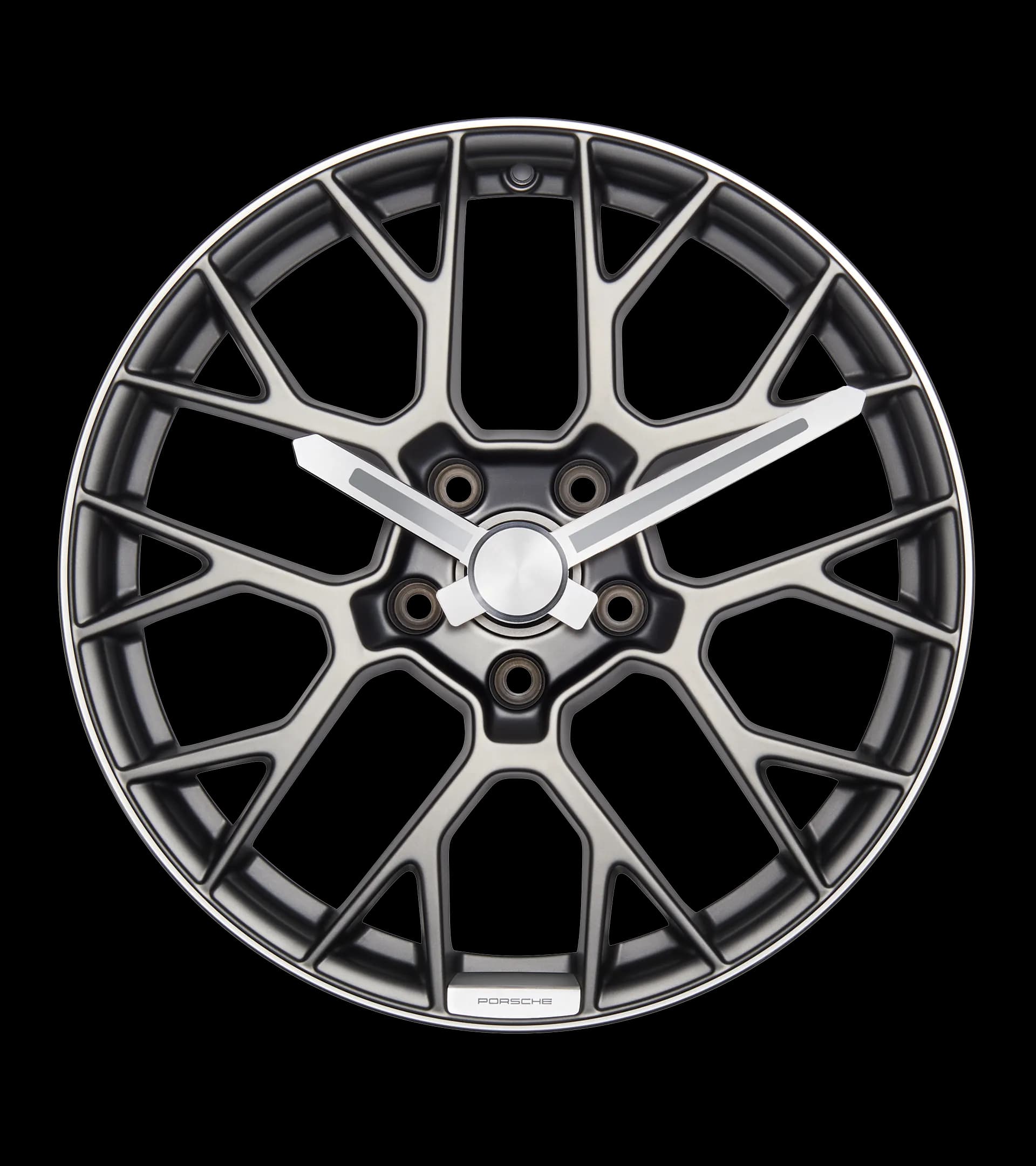 Horloge murale réalisée à partir d’une jante originale RS Spyder Design de l’actuelle Porsche 911. Aiguilles avec éclairage Superluminova dans l’obscurité. Élément noble avec signature « PORSCHE ». Comprend une fixation murale.
