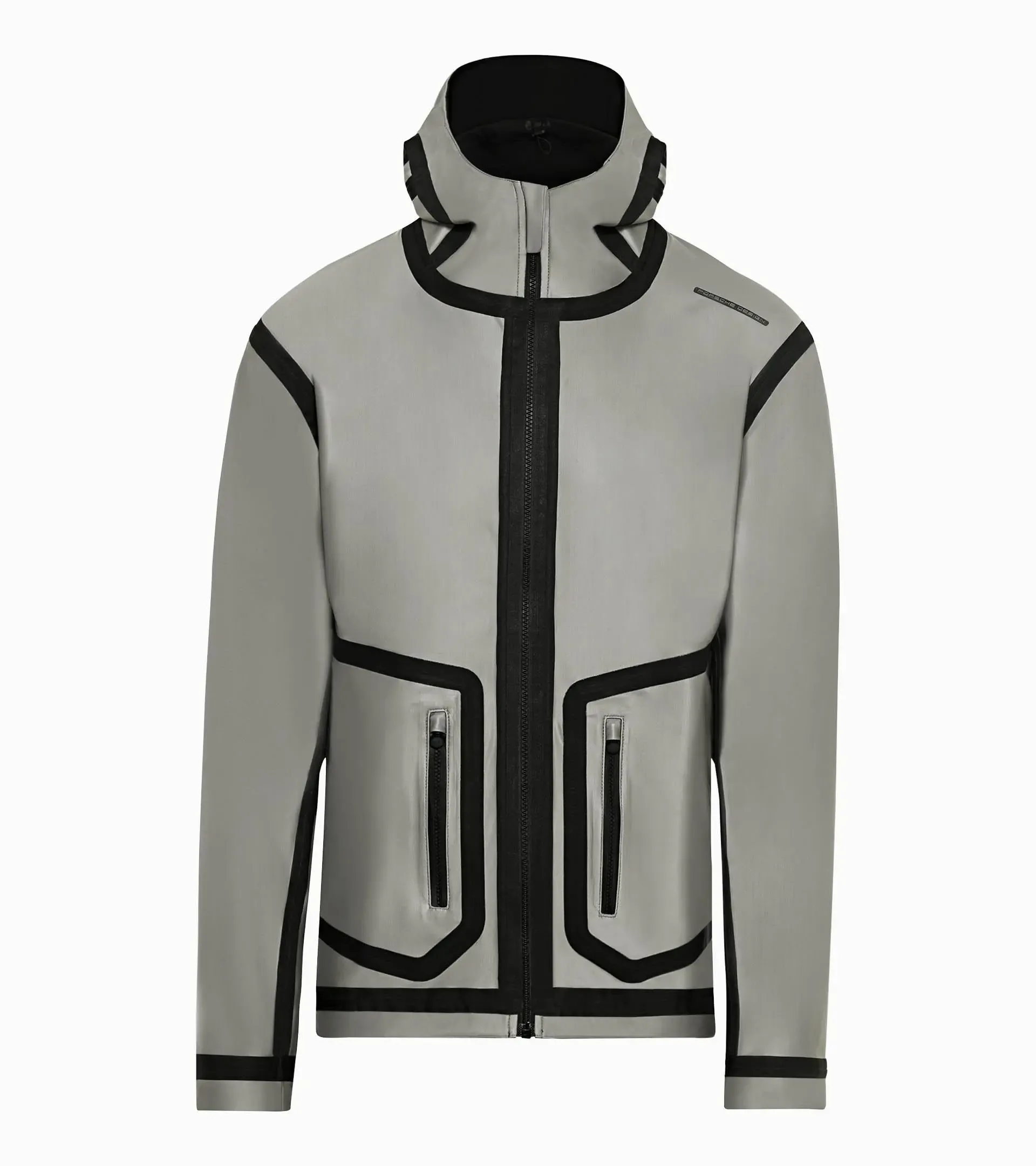 50 Jahre Engineered Passion: Seit 1972 schreibt Porsche Design Designgeschichte – mit Produkten, die Technologie, Leidenschaft und Performance perfekt vereinen. Die limitierte 50Y Porsche Design Capsule Collection ist eine Hommage an diese unverkennbare Design-DNA. So auch die 50Y Reversible Jacket. Die sehr leichte Wendejacke ist nicht nur maximal flexibel im Stil durch ihre zwei unterschiedlich farbigen Seiten, sondern auch multifunktional. Atmungsaktiv, winddicht, wasserdicht, elastisch, widerstandsfähig, temperaturregulierend: Der exklusiv für Porsche Design entwickelte Hightech-Oberstoff – ein dreilagiges, extrem leichtes und stabiles Laminat – verleiht der Jacke eine spektakuläre Vielseitigkeit. Mit der schwarz-matten Seite nach außen getragen, wärmt das Material. Trägt man die titanfarbene, sonnenreflektierende Seite, wirkt es kühlend. In Kombination mit dem technisch-cleanen Design entsteht eine Jacke, die Sie das ganze Jahr und zu allen Freitzeitaktivitäten tragen können – ob Wandern, Reisen, Skifahren oder einfach ein Citytrip. Für den optimalen Schutz vor Wind und Wetter wird das Material (Wassersäule 10.000) unterstützt von einer verstellbaren Kapuze, Aqua-Stop-Reißverschlüssen und verschweißten Nähten. Dezente Brandings wie das 50Y Porsche Design Logo runden den exklusiven Style ab. Für den perfekten 50Y Sportswear Look kombinieren Sie die Statement-Jacke mit dem 50Y Tee, Cargo Pants, 50Y Cap und den neuen 50Y RCT PWRPlate Sneakern.