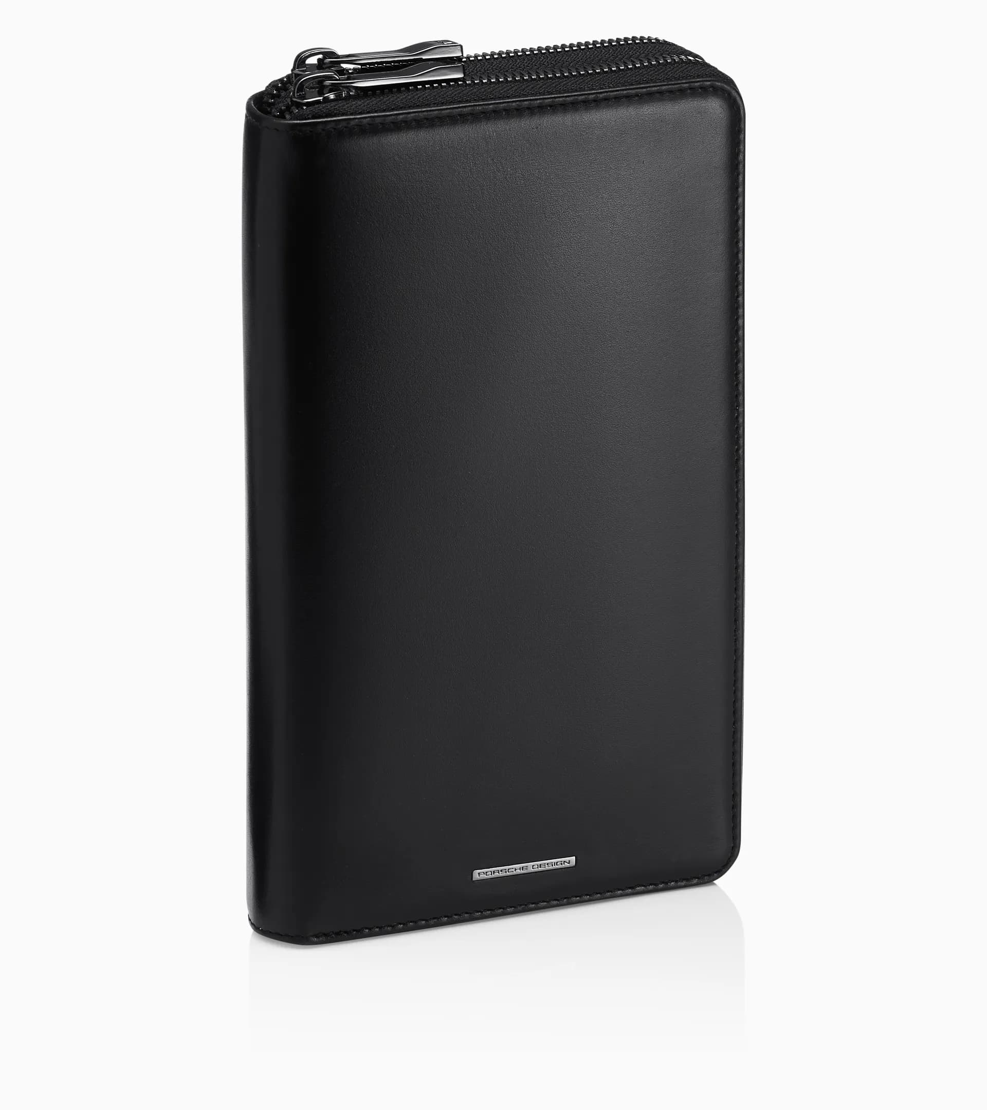 Men's pouch-style briefcase with a wrist loop, designed to travelCrafted from smooth calf leather with Porsche Design metal logo tagOne zipped compartment with 12 card slots, one mesh slot for your ID, and three larger pockets for billsRFID protectionSecond zipped compartment has a zip-up pocket for coins, two bill slots, and two spacious pockets to fit your cellphone