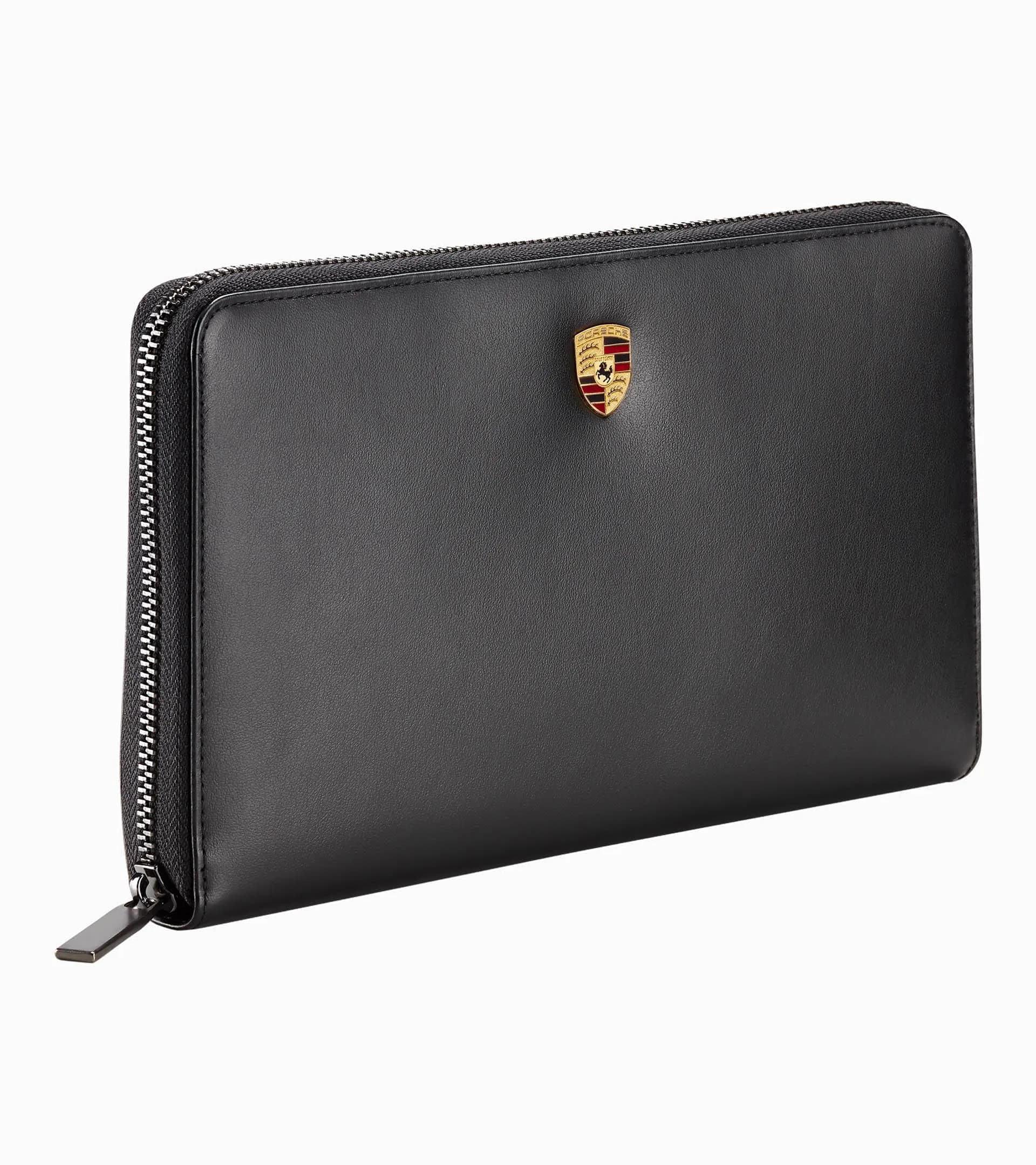 Die elegante Fusion von Ästhetik und Funktion: die Porsche Design Classic Kollektion. Hochwertiges glänzendes Glattleder in Schwarz, nahtlos verarbeitete Außenseiten und die charakteristische Porsche Design Logoplatte aus Metall verleihen dem Porsche Design Classic Key Case M einen zeitlosen und minimalistischen Stil. Das Schlüsseletui zeichnet sich darüber hinaus durch perfekte Funktionalität aus. Im Hauptfach mit Reißverschluss können verschiedene Schlüssel an zwei Ketten mit geteilten Ringen angebracht werden. Eine zusätzliche Reißverschlusstasche auf der Vorderseite bietet Platz für Münzen oder gefaltete Banknoten.