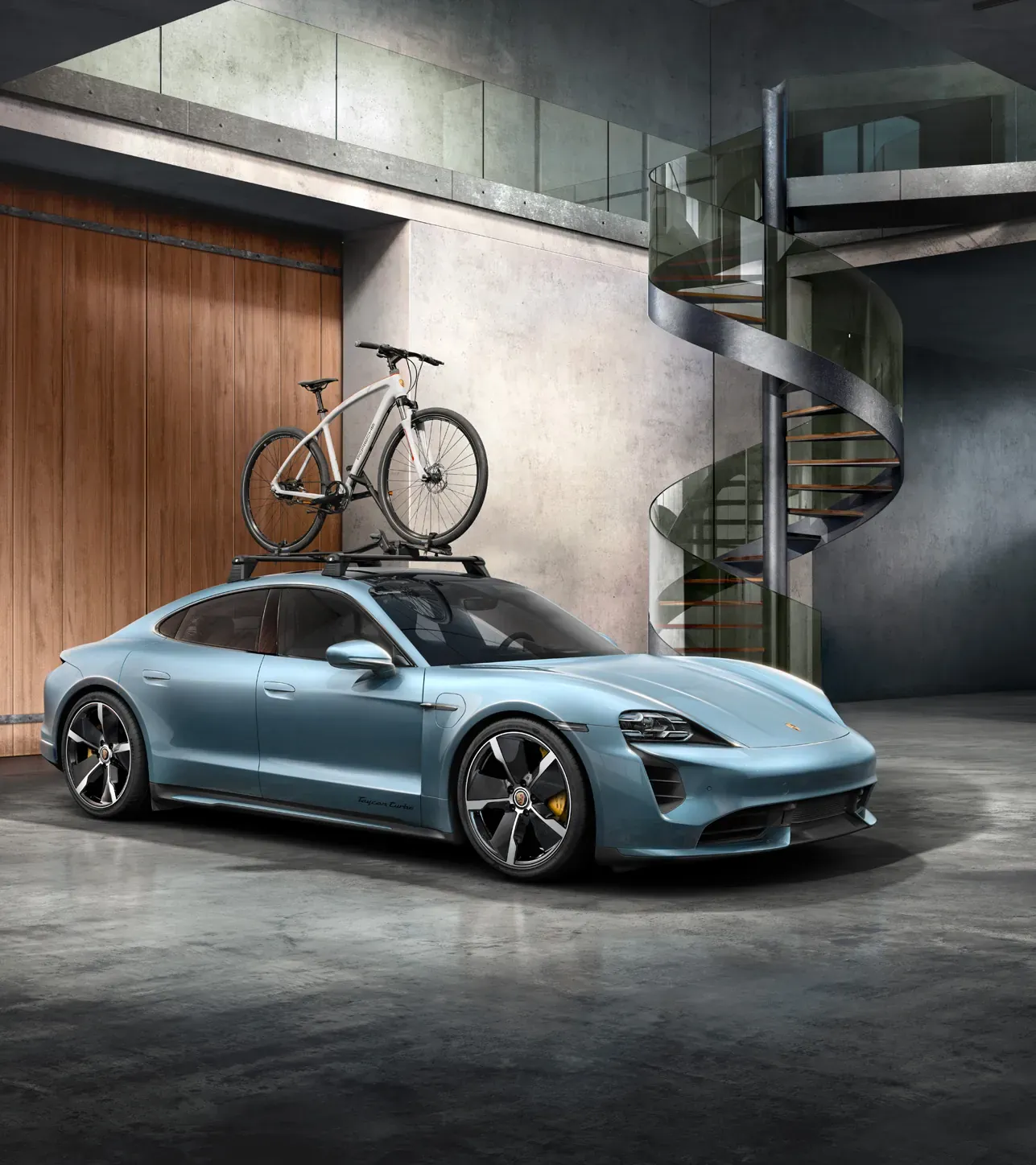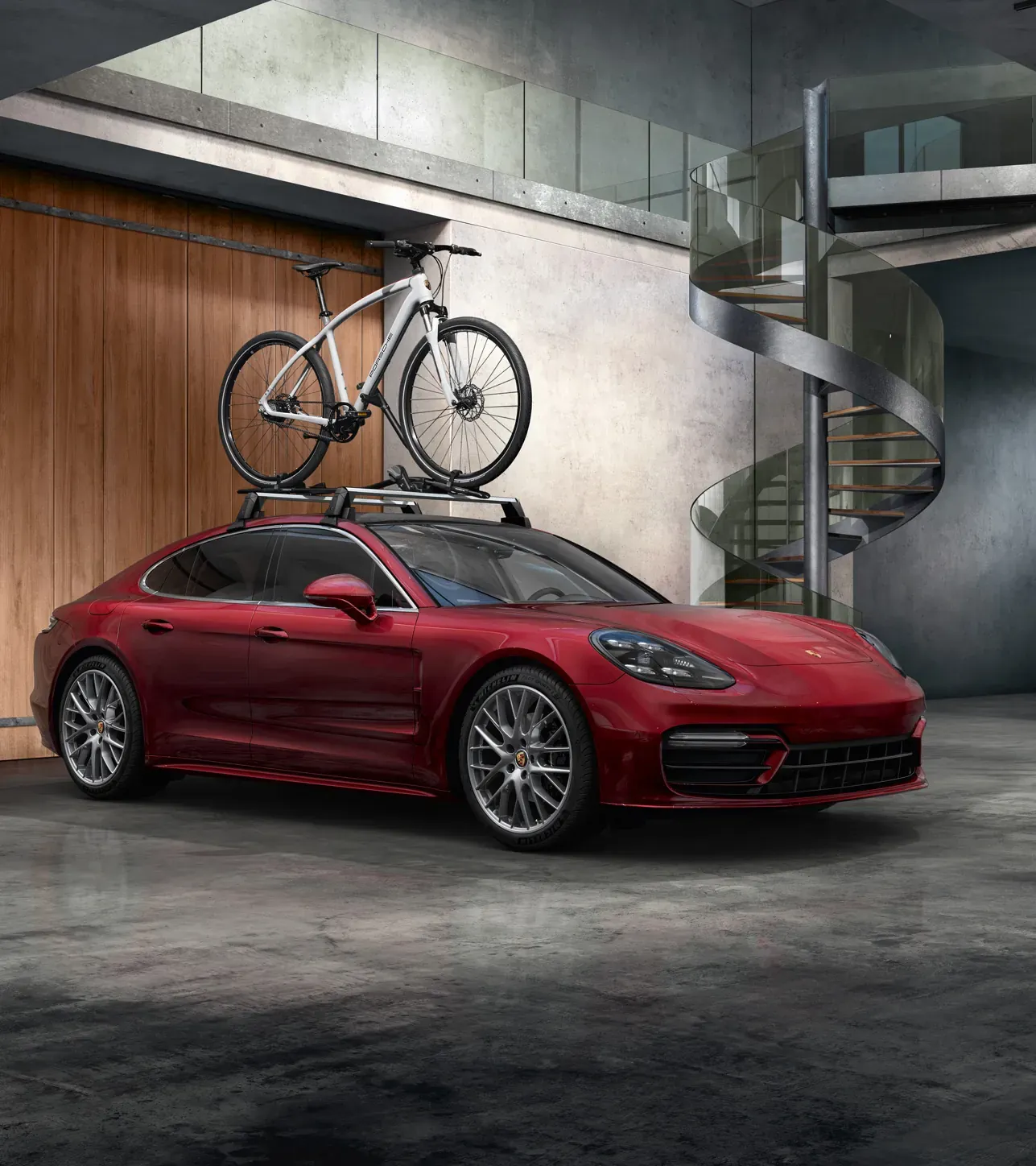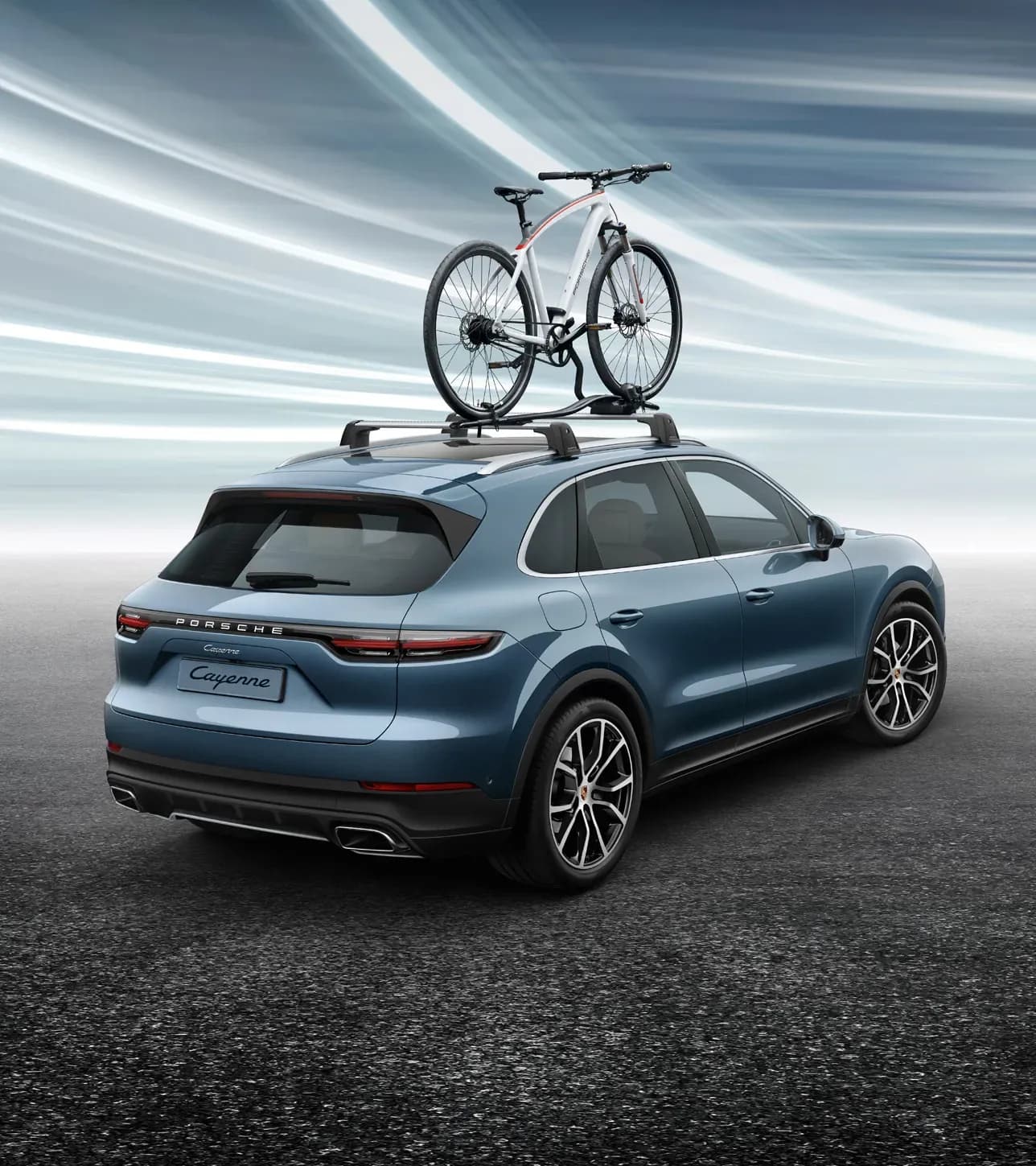 Sicherer Transport: Schützt Ihr Fahrrad während der Fahrt Mit stilvollem "PORSCHE" SchriftzugMehrfachnutzung: Montage von bis zu 3 Haltern auf dem Basisträger Dachtransportsystem möglich