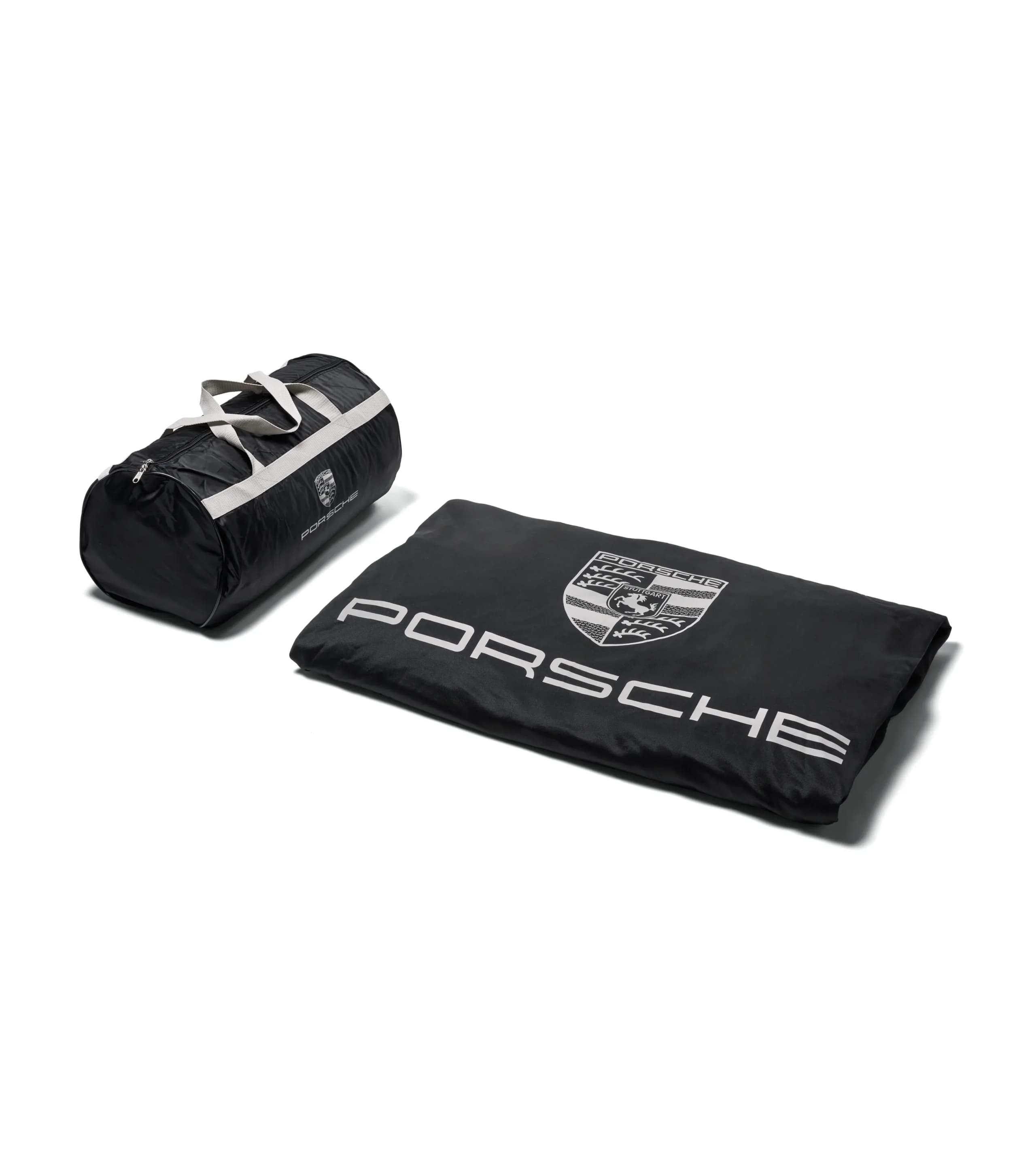 Indoor-Abdeckhülle in weiß mit Porsche Wappen und Schriftzug. Bestehend aus 100 Prozent Polyester. Das Car Cover ist anti-statisch, staubabweisend und atmungsaktiv. Die Innenseite ist beschichtet und schützt die Karosserie vor Kratzern.