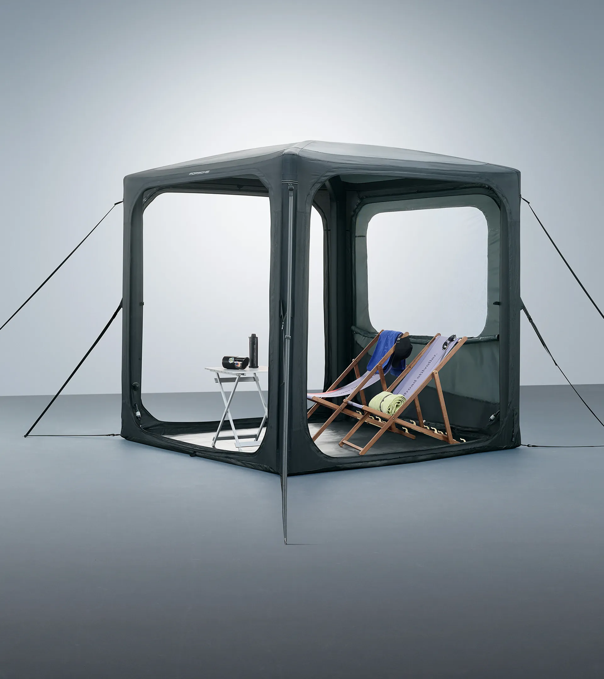 Hinweis: Der Pavillon ist separat erhältlich und nicht Teil des Lieferumfangs. Das Basis-Paket (inklusive Pavillon, Fahrzeugverbindungstunnel, Bodenplane und Seitenwand mit Fenster) erhalten Sie hier: Pavillon