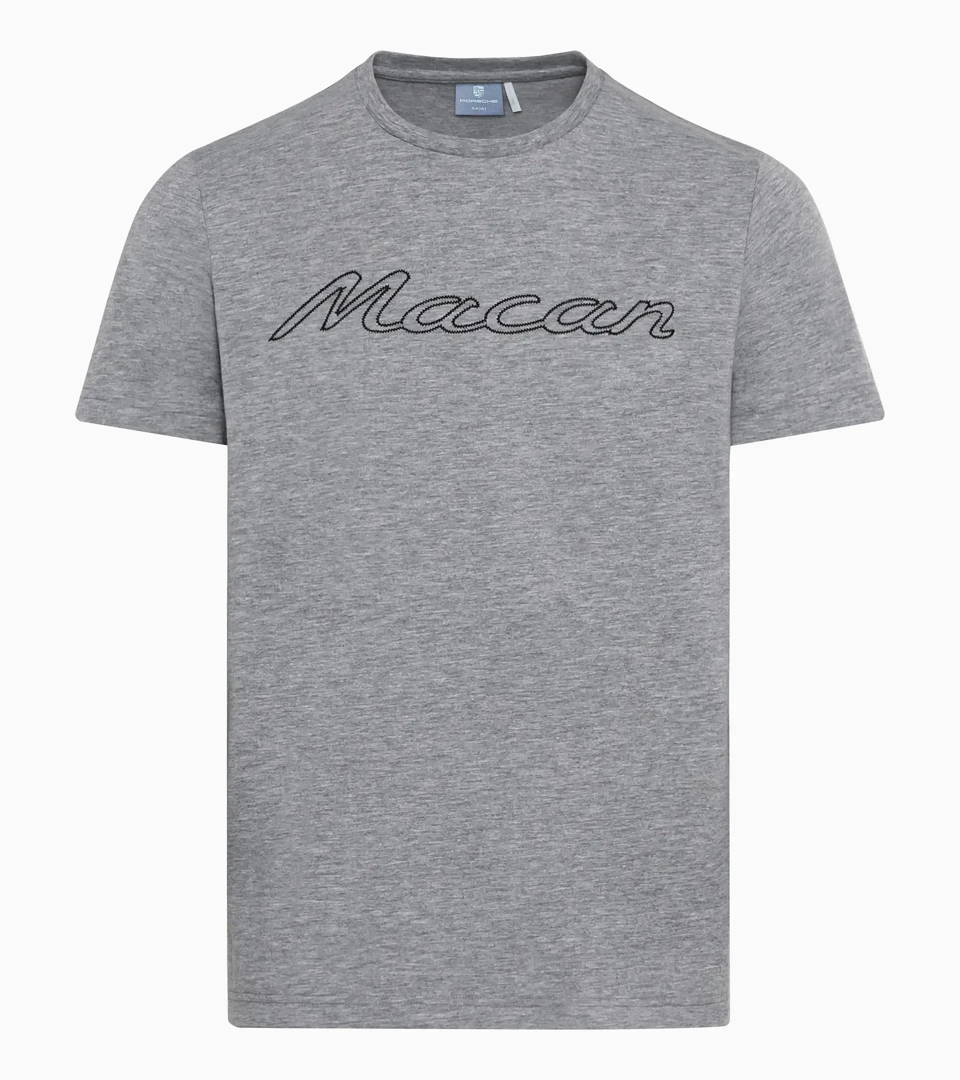 Porsche Unisex Halbarm-T-Shirt, bestickt mit Macan-Schriftzug.