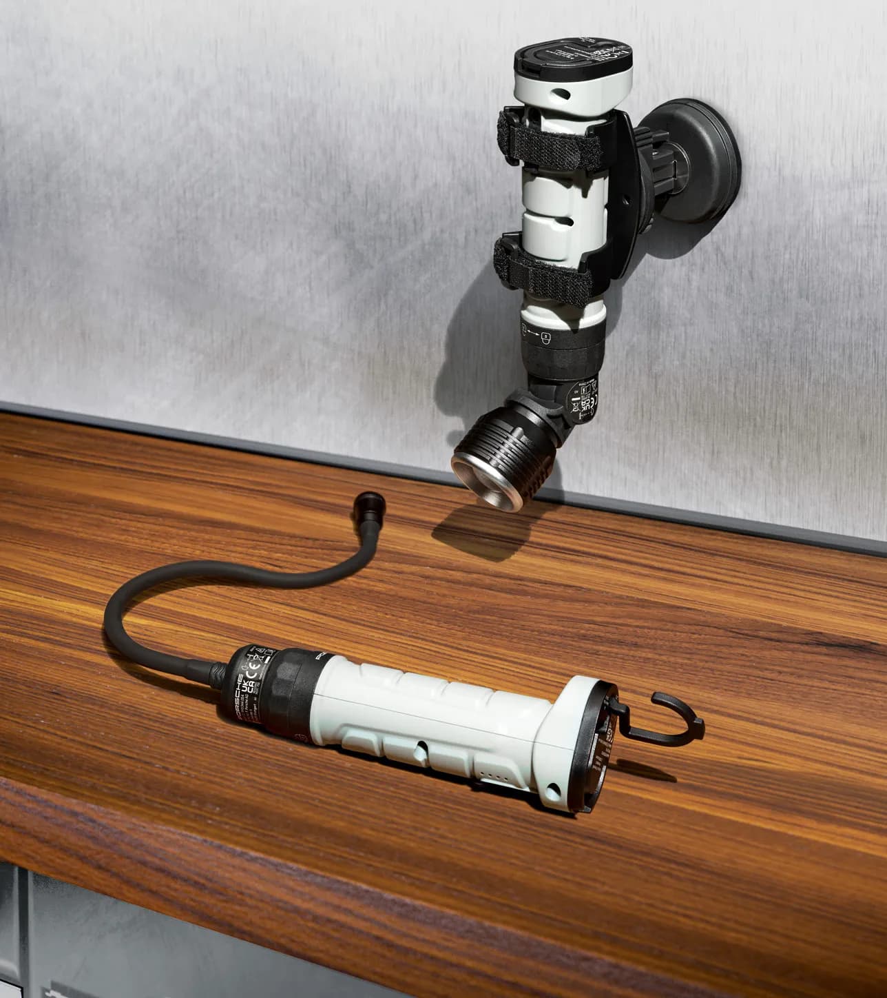 Der zusätzliche Saugnapfhalter ist die perfekte Ergänzung für das LED-Leuchtenset von Porsche Tequipment. Er ermöglicht eine noch flexiblere Platzierung der kraftvollen LED Leuchten. Der starke Saugnapf haftet sicher auf glatten Oberflächen wie Glas, Metall oder Kunststoff. Einfaches Der zusätzliche Saugnapfhalter für das Porsche LED-Leuchtenset bietet eine zuverlässige Befestigung auf glatten Oberflächen. Mit dem Klettband lässt sich das Leuchtenset sicher und stabil am Griffmodul befestigen. Mit einem geringen Gewicht von 123g ist es ideal für schnelle und unkomplizierte Montagen, egal ob zu Hause oder unterwegs.