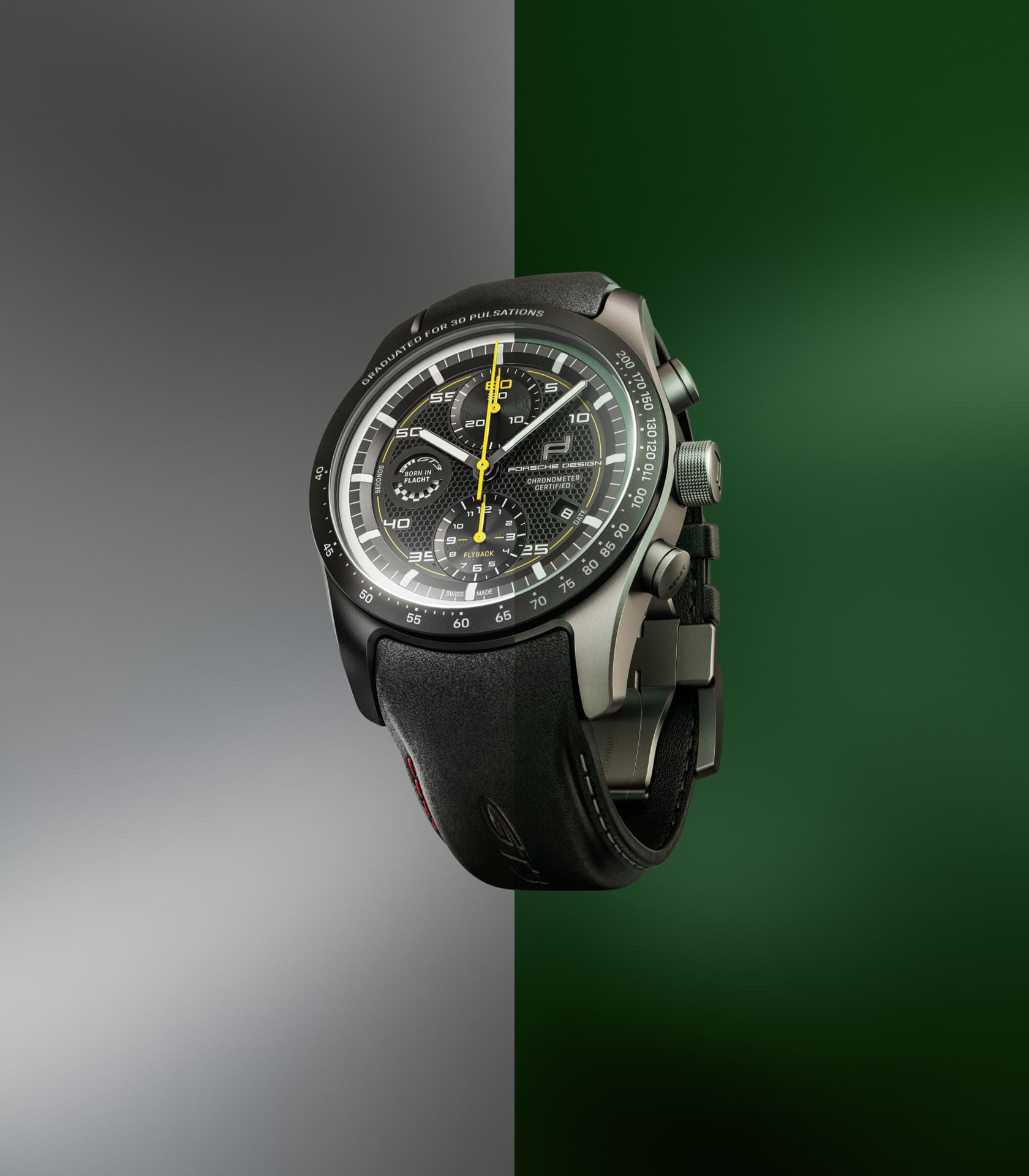 Die Zeitmesser entstehen an diesem besonderen Ort in Handarbeit und mit viel Liebe zum Detail. Hier fließt die Expertise von Sportwagen- und Uhrenexperten zusammen, um die perfekte Symbiose zwischen beiden Disziplinen zu schaffen und dabei höchste ästhetische Ansprüche mit optimaler Ablesbarkeit sowie handwerklicher Präzision zu vereinen. Somit garantiert das von erfahrenen Meistern ihres Faches gefertigte Porsche Design Kaliber WERK 01.200 mit COSC-Zertifizierung und Flyback-Funktion herausragende Präzision. Für neue Bestzeiten und das einzigartige Gefühl, einen echten „Sportwagen am Handgelenk“ mit dem Prädikat Porsche zu tragen.