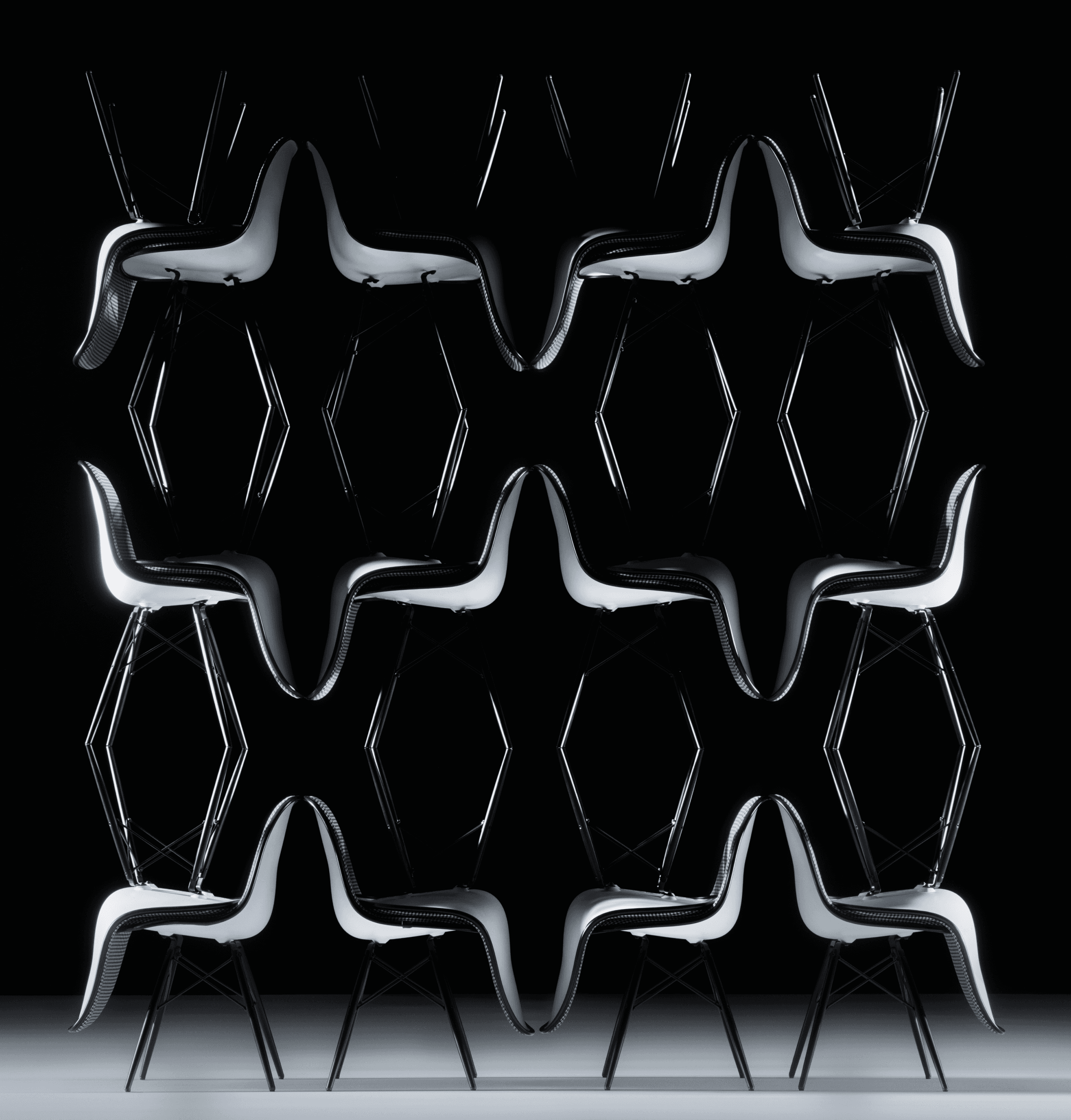 Zwei ikonische Stile kombiniert: Der Eames Plastic Side Chair Pepita Edition basiert auf dem berühmten Stuhldesign, das Ray und Charles Eames erfanden, und wird in Verbindung mit dem Pepita-Stoff von Porsche zu einem einzigartigen Statement Piece. Der Designstuhl von Porsche und Vitra bietet nicht nur elegante Schwarz-Weiß-Kontraste, sondern auch komfortable Unterstützung: Die Sitzschale ist der Form des menschlichen Körpers angepasst.
