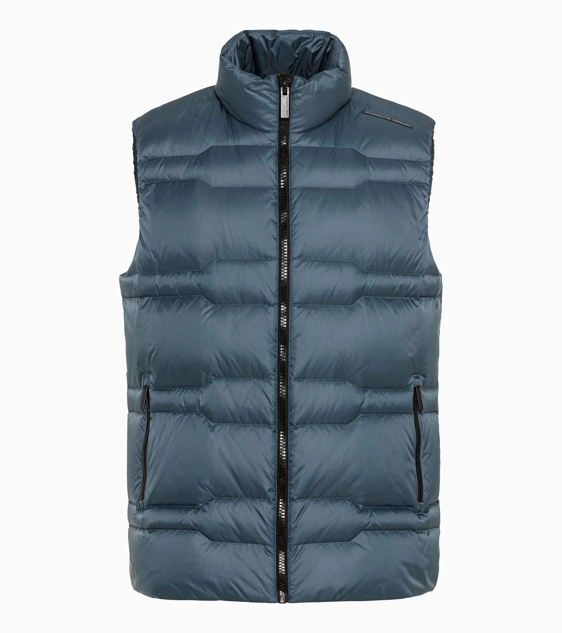 Sophisticated design meets superior functionality: the premium quilted vest impresses with its efficient insulation and, thanks to Pertex® Quantum technology, is extremely light yet uncompromisingly durable. The vest is made from 100% recycled nylon and has a Responsible Down Standard certification. Inspired by the seat centre of the 911 Turbo, the vest impresses with a striking quilted pattern. Two side pockets and one inner pocket provide enough storage space for all essentials. The detailed design is rounded off by the branded zip pullers.
