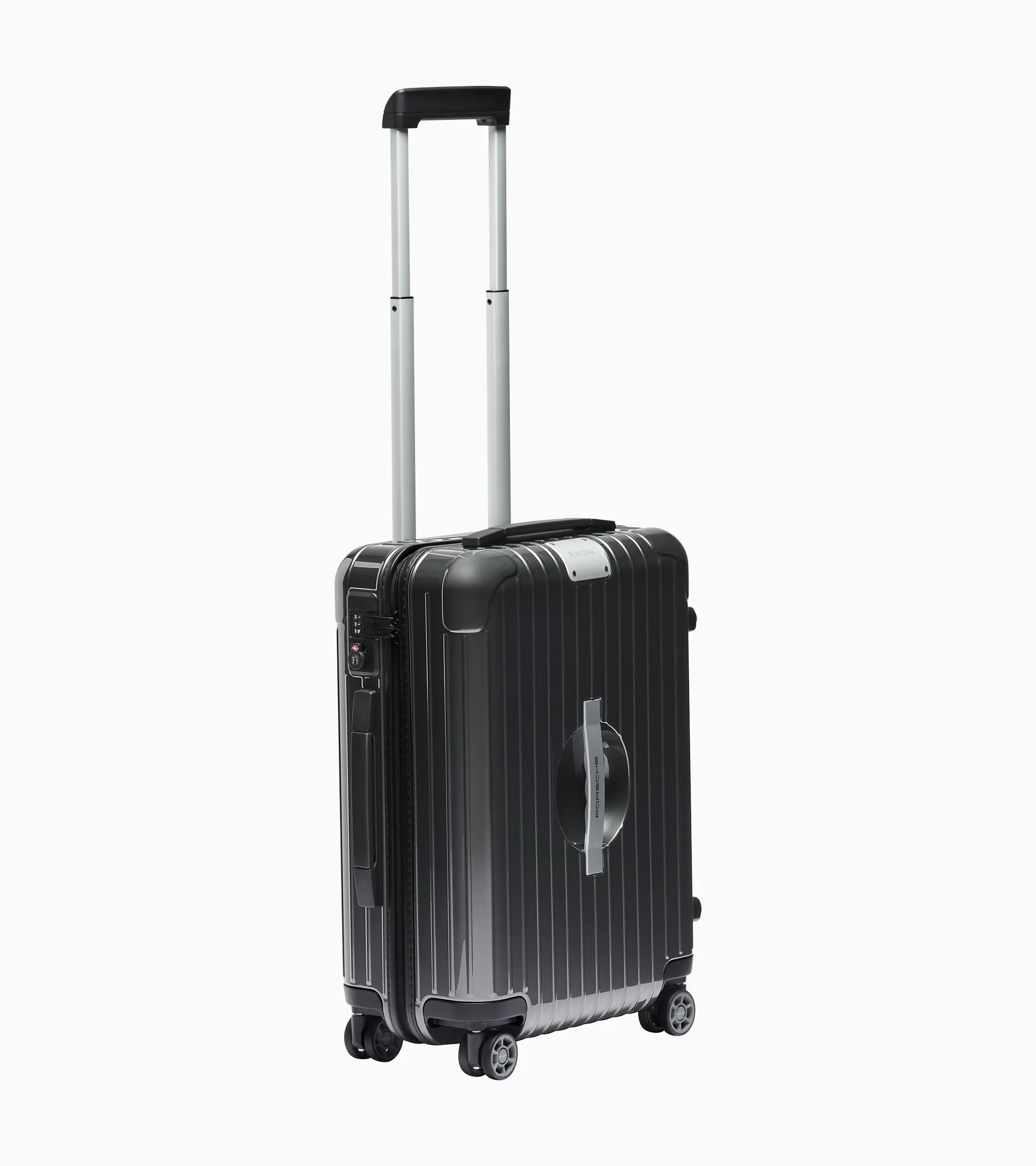 Robust, ultralight Multiwheel® suitcase in polycarbonate. The case shells react flexibly under pressure and give way. Dimensions adapted to the storage spaces of Porsche Sports cars, suitable for all model series. Special aluminium handle for easier loading into the luggage compartments. Recessed TSA lock, infinitely adjustable telescopic handle and mesh zip pockets inside. Lining with woven PORSCHE logo.