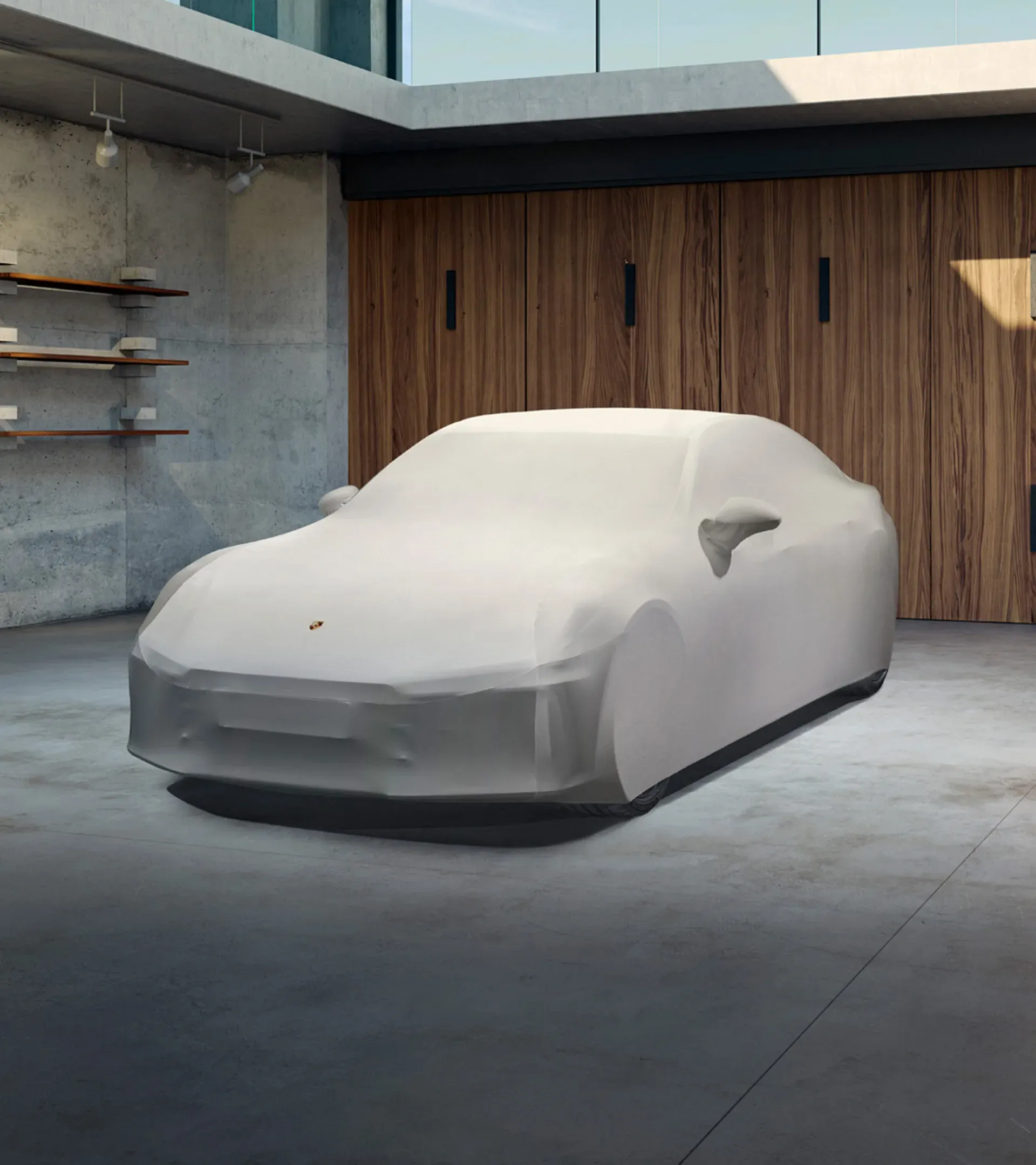 Housse de voiture d’intérieur parfaitement ajustée, fabriquée dans un matériau respirant, antistatique et antisalissure. Avec écusson Porsche coloré et sac de transport noir pratique.