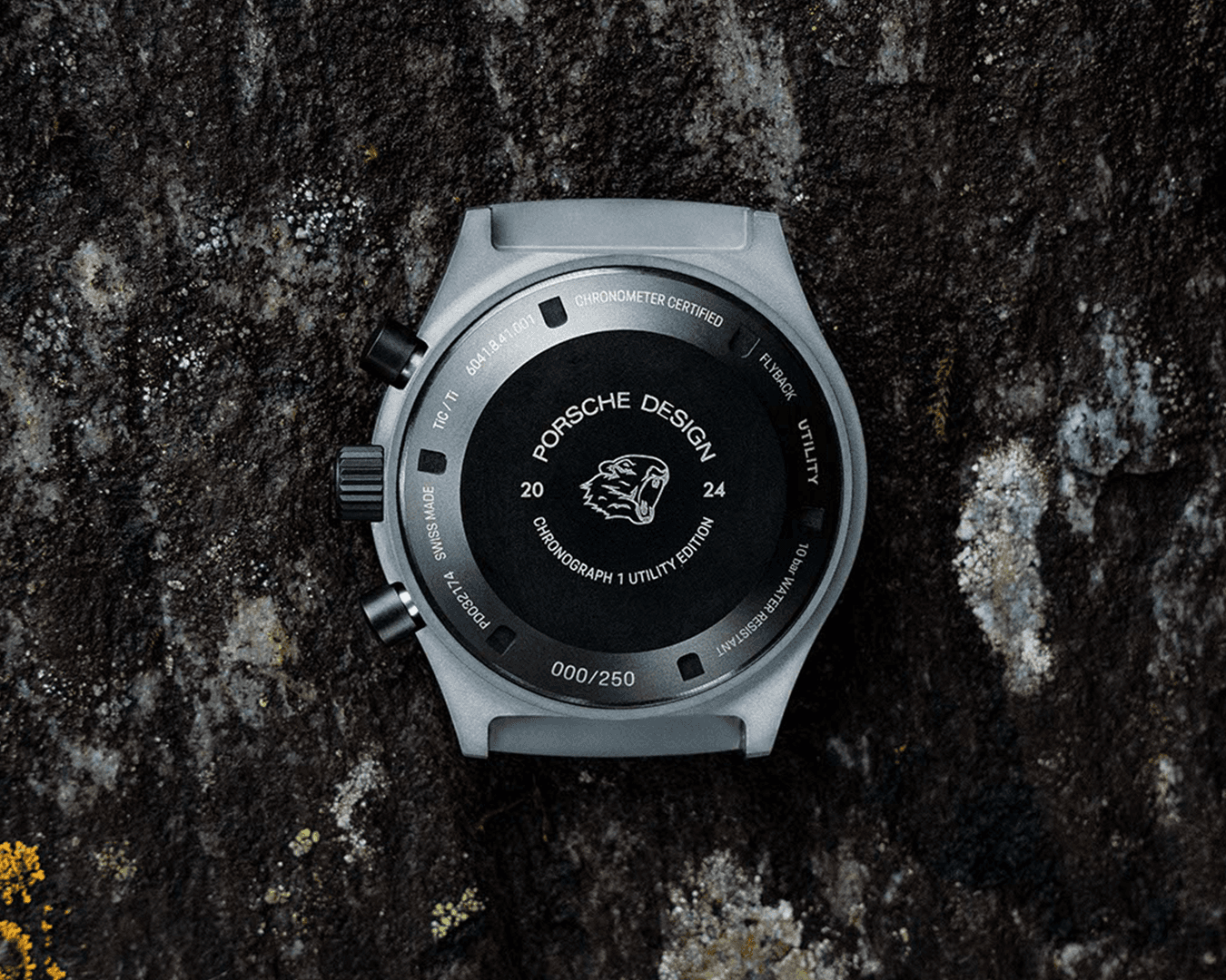 A sottolineare l'esclusività di questa edizione limitata, sul fondello è presente l'incisione con il marchio Mankei e la scritta “Chronograph 1 Utility Edition”, accompagnata dal numero dell'edizione limitata XX/250. La corona del cronografo è ornata dallo storico logo Porsche Design.