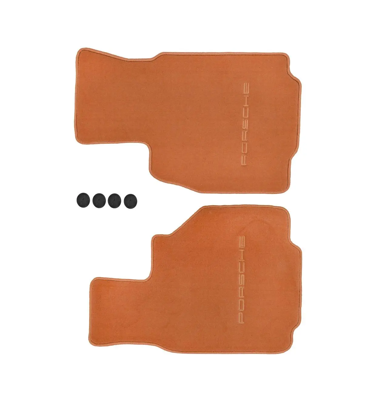 Set of two floor mats in Brown/Natural for right-hand drive vehicles; suitable for Porsche Boxster (986) from model years 1997 to 2004.