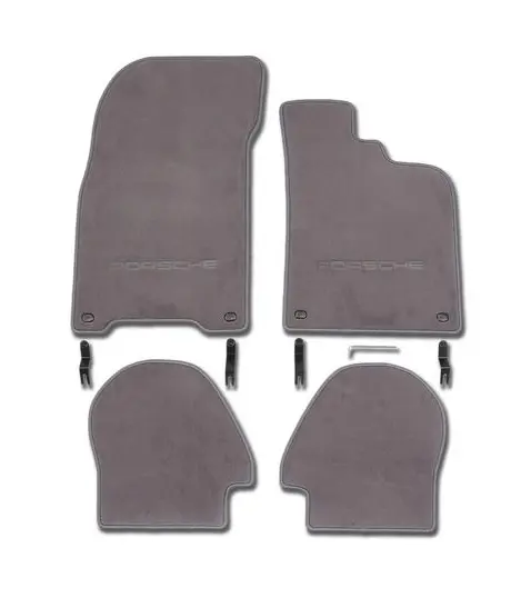 Set of four floor mats in Classic Grey for right-hand-drive vehicles, including fastening materials; suitable for Porsche 964 and 993 from years of construction 1989 to 1998 with Tiptronic gearbox.