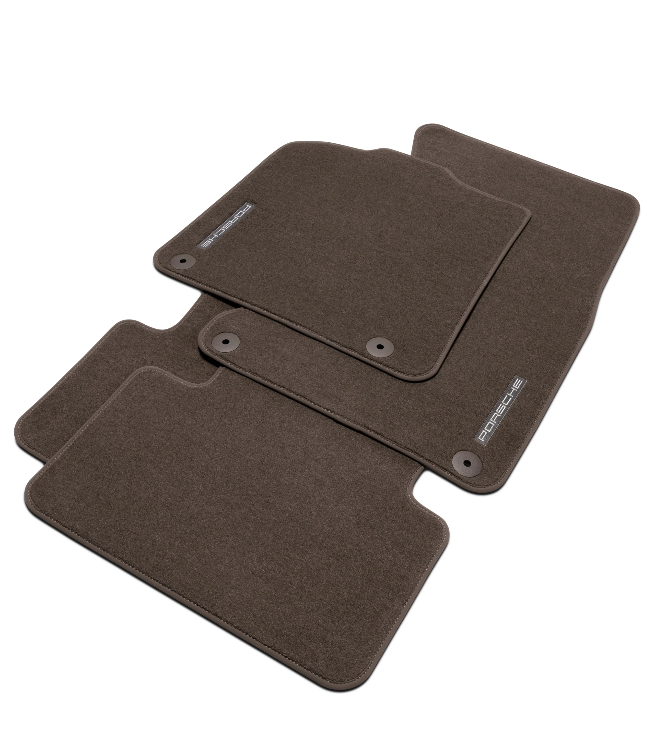 Four-piece set, in selected interior colours, with nubuck edging and embroidered silver „PORSCHE“ logo.