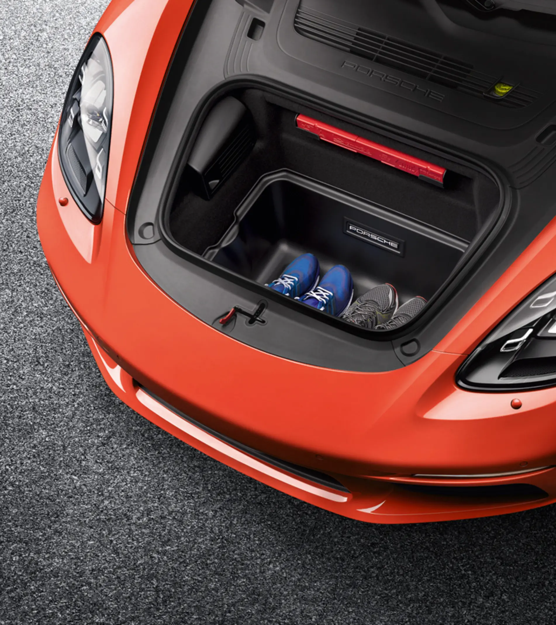 Custom-fit protective liner with „PORSCHE“ logo. Waterproof and washable. Equipped with handles.