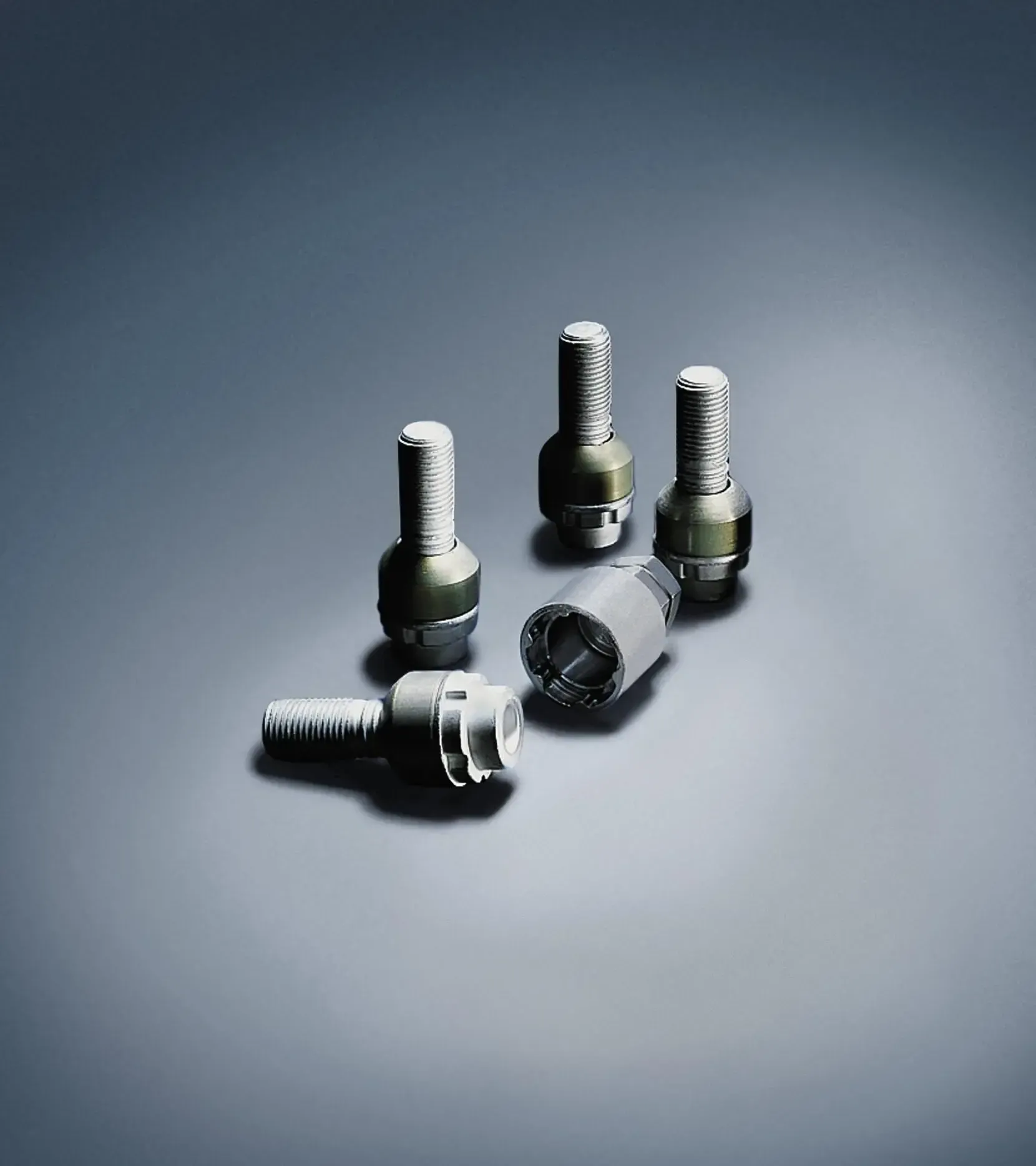 Sada pojistek proti krádeži, skládající se ze 4 kódovaných šroubů na kola.