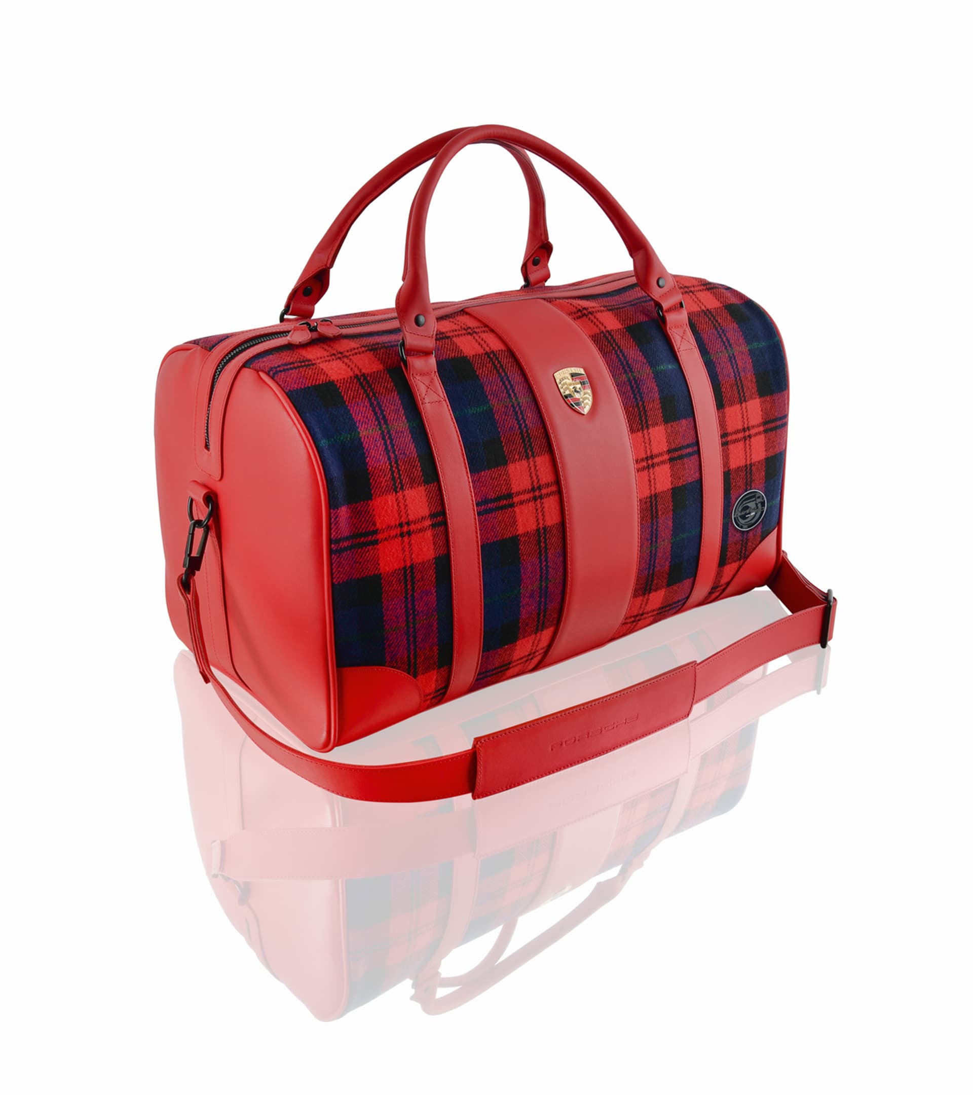 50 år 911 Turbo: Det var det berømte skotskternede sædemønster i den første Porsche 911 Turbo i en smallere version, givet som gave til Louise Piëch i anledning af hendes 70-års fødselsdag, der var inspirationen bag designet af den limiterede touringtaske 911 fra Porsche Classic. Rødt læder af høj kvalitet, et mindre 911 G-våbenskjold og en sort magnetlukning med Porsche-skrift afrunder touringtaskens stilfulde look. "50-års" jubilæumsmærket er placeret i nederste højre hjørne.
