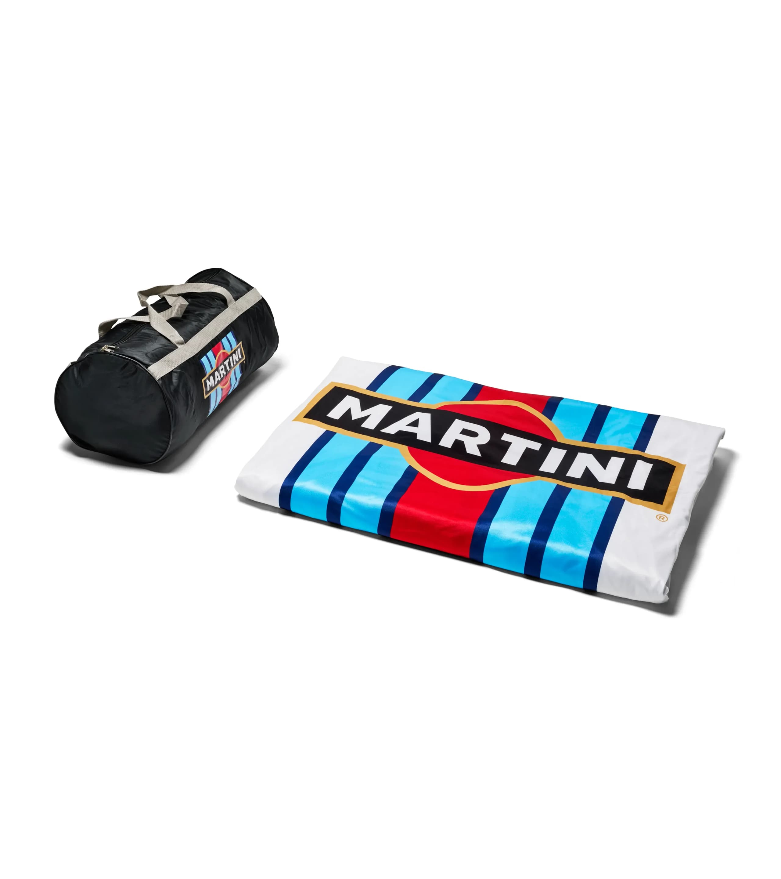 Specialtilpasset indendørs bilovertræk lavet af åndbart, antistatisk og smudsafvisende materiale. I Martini Racing-design.
