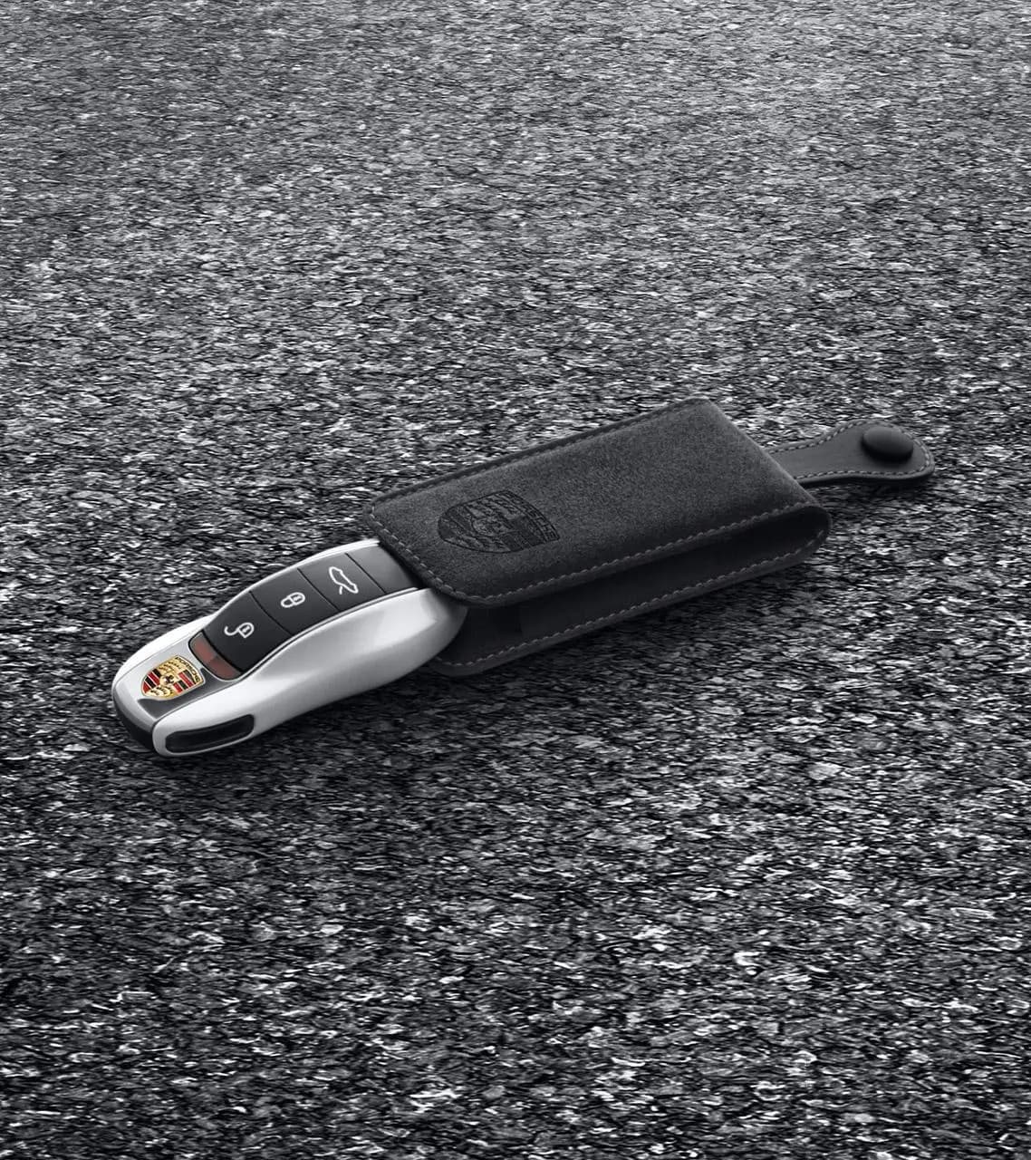 Fremstillet af sort Alcantara®. Klappens passering og siderne er lavet af sort læder. Med pyntesømme i udvalgte farver og med Porsche-våbenskjold.