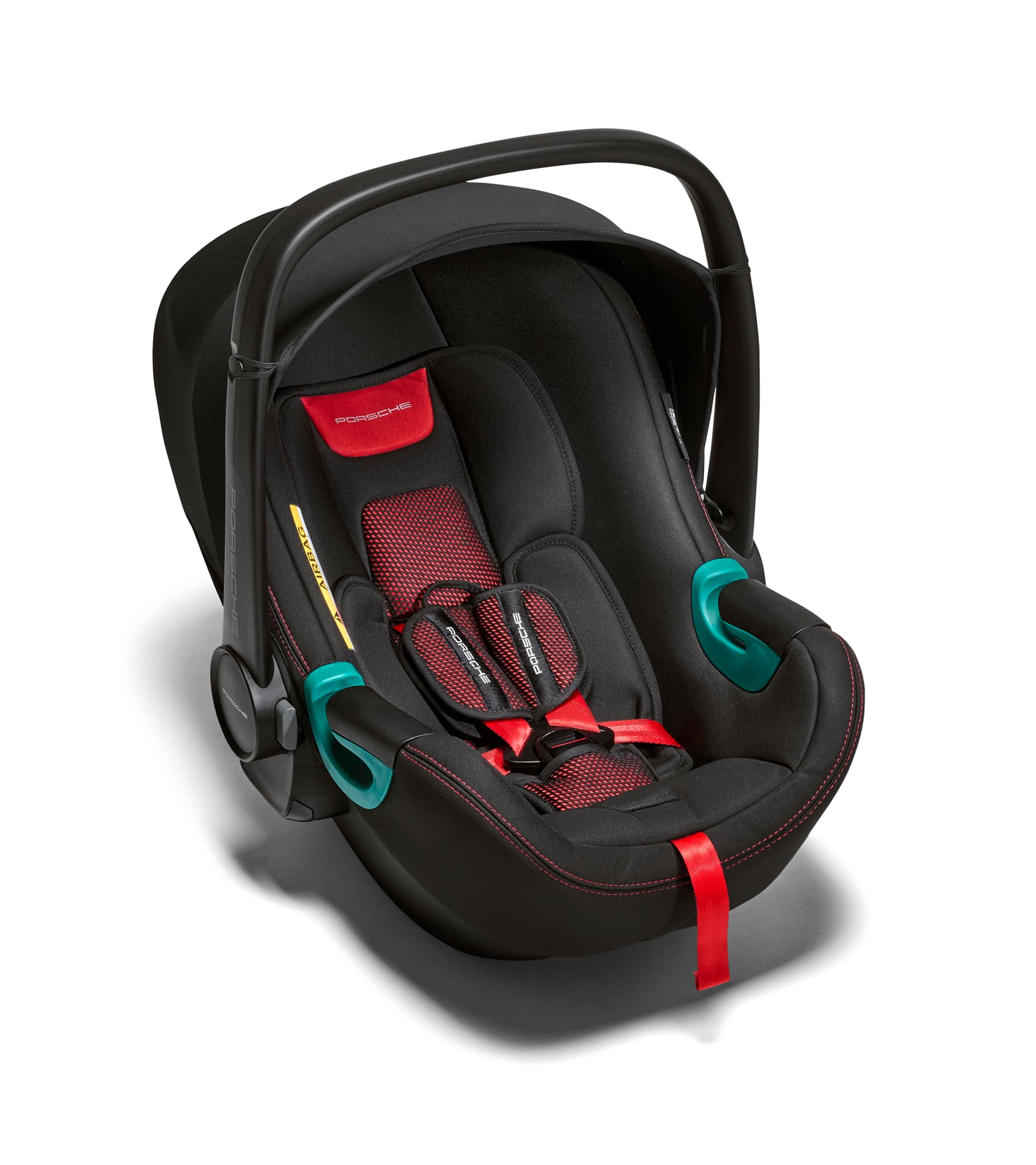 Porsche Baby Seat i-Size er udviklet af Porsche i et unikt design og har påtrykt "PORSCHE" på begge sider.