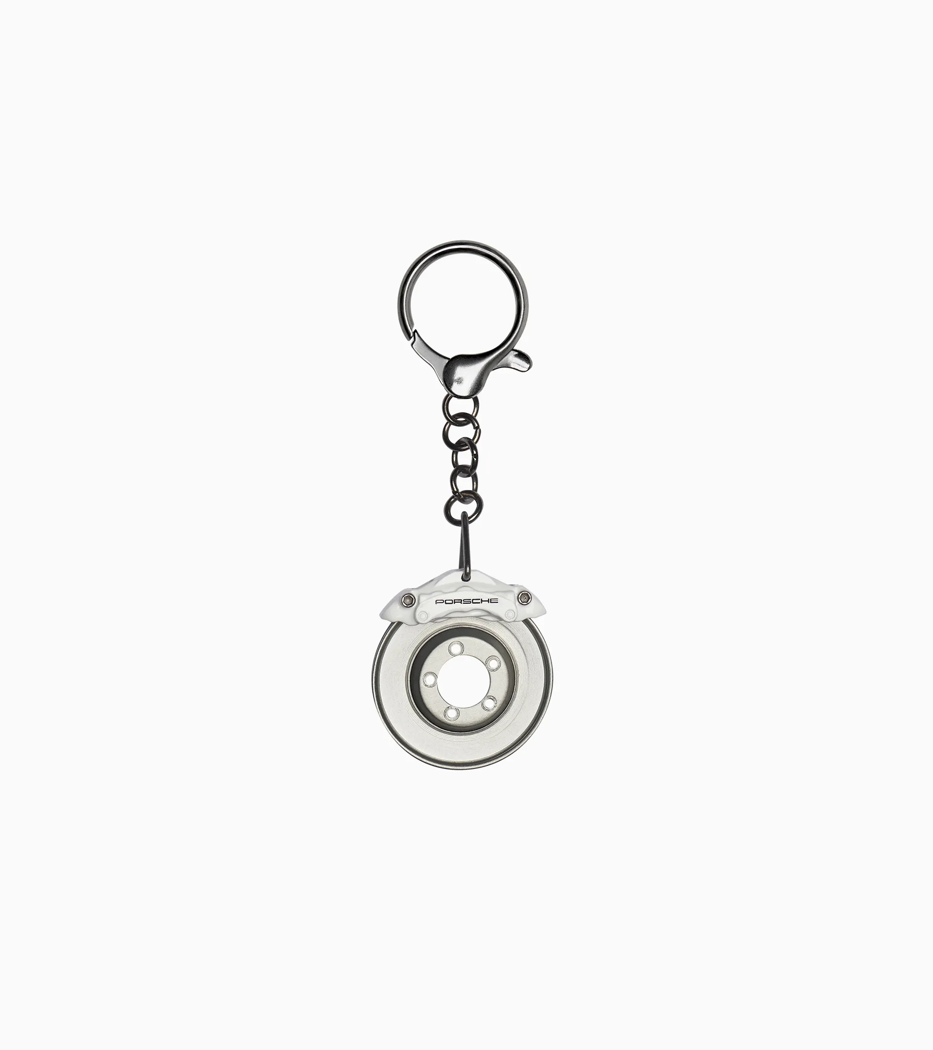 Keeps things together that belong together: the keychain with faithfully reproduced, spinning Porsche brake disc. Compatible with all Porsche vehicle keys.