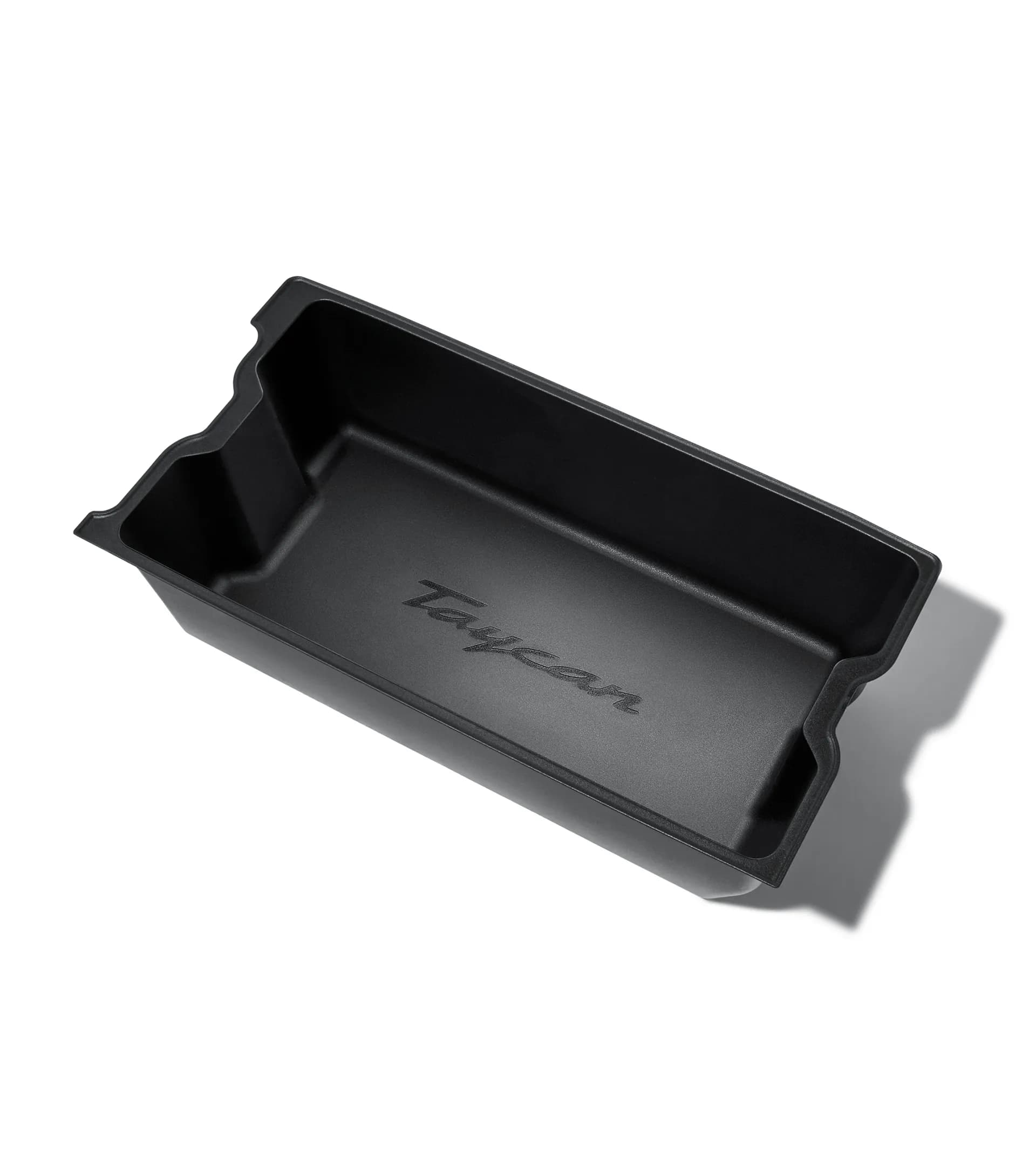 The tailor-made luggage compartment lining for the Taycan effectively protects the front luggage compartment from dirt, moisture and wear. 'Taycan' lettering adorns the black protective tray, which has impressive functionality and an attractive design. The deep luggage compartment liner is made of a high-quality, waterproof material and can be easily removed using the side handles. This means the luggage compartment will always be in perfect condition and ready for whatever adventures you want to experience with your Taycan.