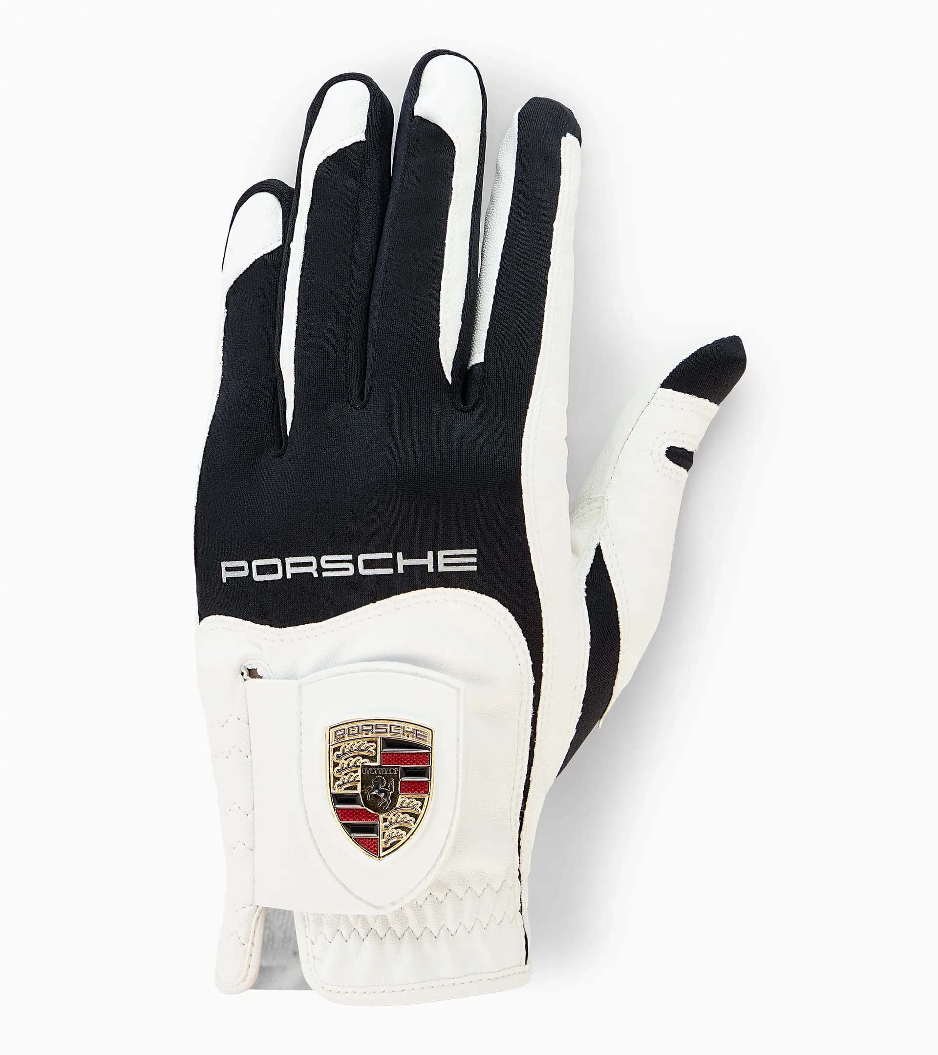 Porsche golf glove, made from a functional material blend with a magnetic ball marker.