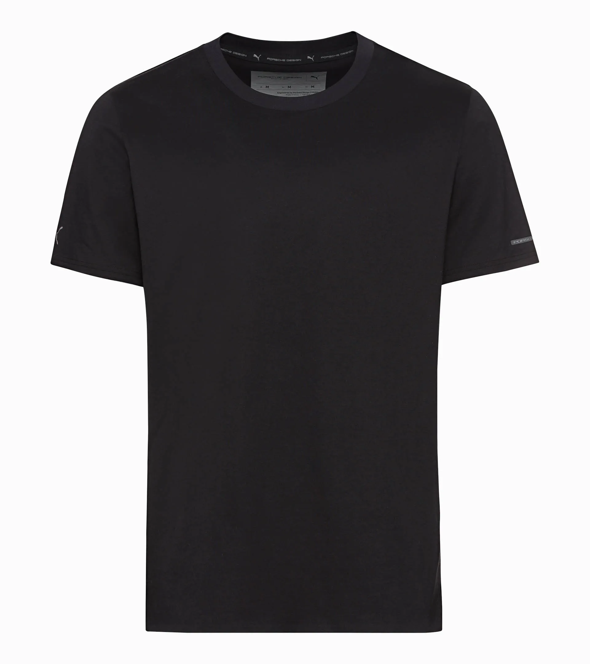 Camiseta deportiva con cuello redondo y logotipos reflectantes de Porsche Design y PUMA. La camiseta básica para estilos deportivos.