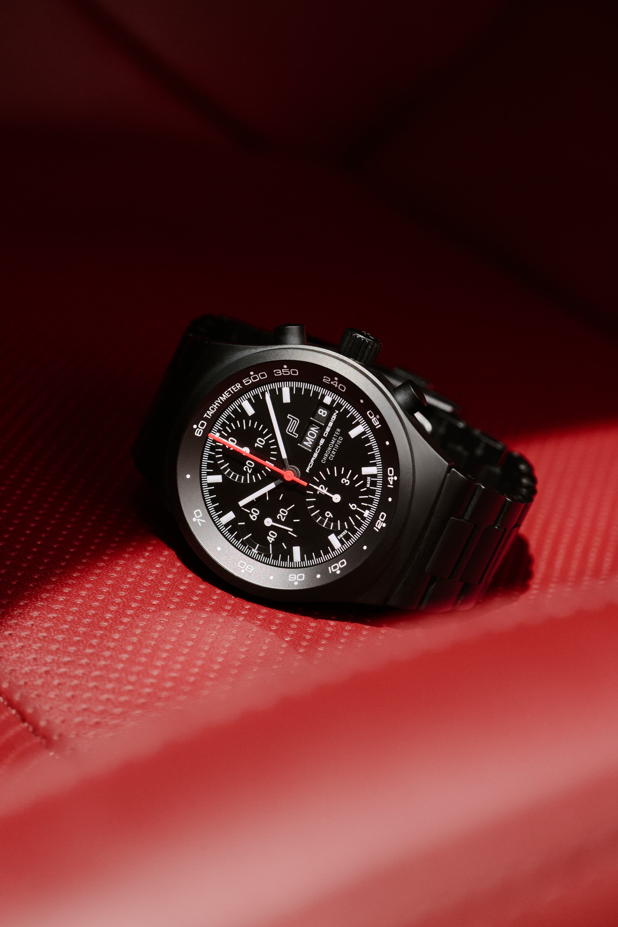 F. A. Porsche trasladó la lógica antideslumbramiento del puesto de conducción del 911 al cronógrafo: mate, de alto contraste y con pocos reflejos, claramente legible incluso en condiciones dinámicas. Este principio caracteriza la legibilidad de los relojes actuales.