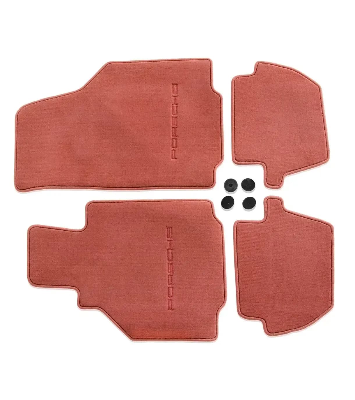 Set of four floor mats in Boxster Red for left-hand drive vehicles; suitable for Porsche 996 Coupé and Cabriolet from model years 1998 to 2005 Not suitable for the 996 Carrera Cabriolet or 996 Targa models from 08/2001 with BOSE surround sound system.