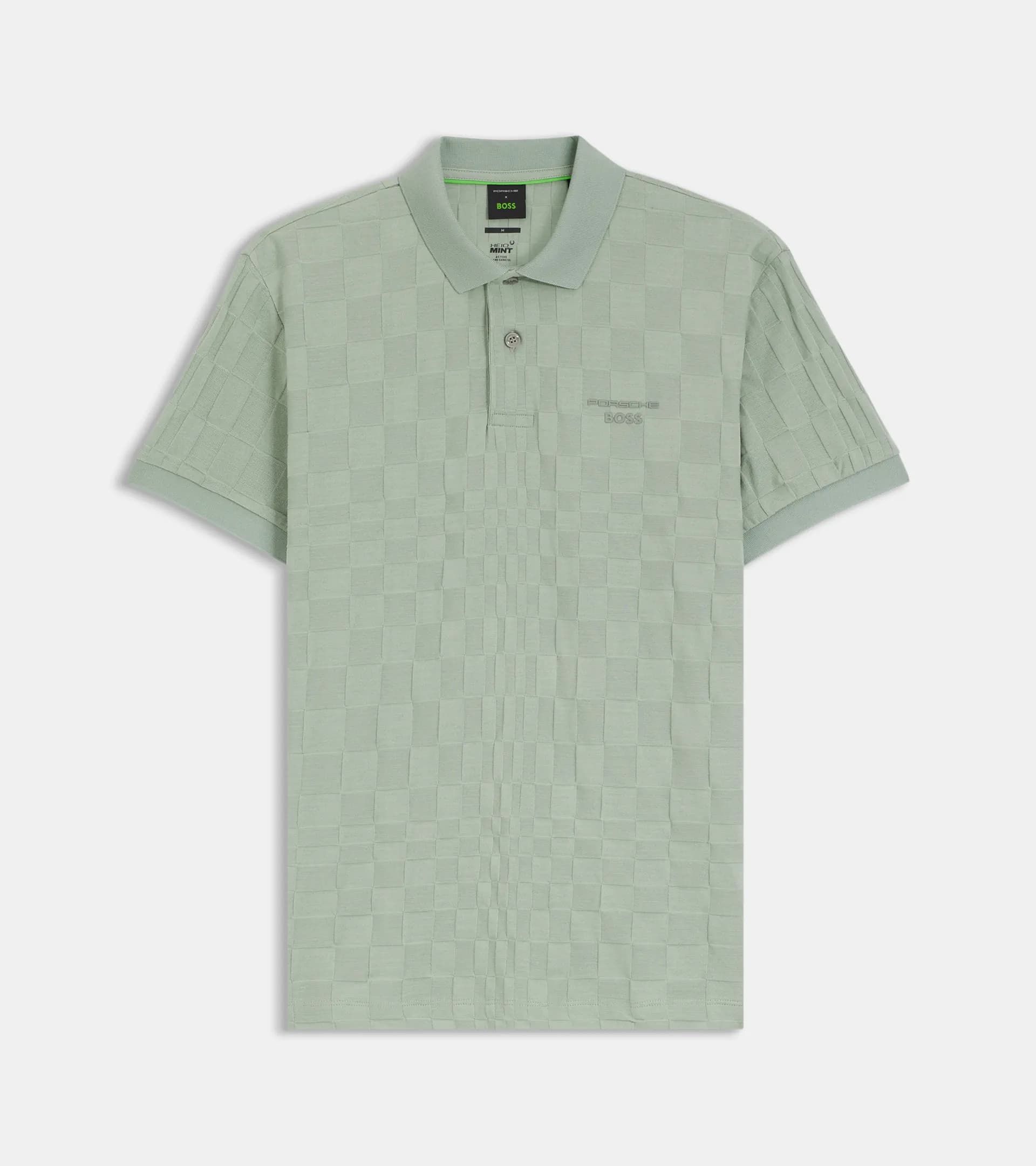 Featuring collaborative branding, this men's Porsche x BOSS polo shirt is designed in cotton with a tonal jacquard-knit pattern. Regular fit. Wide placket.HeiQ Mint is a plant-based deodoriser providing long-lasting odour control to ensure fabrics stay fresh all day, using botanical technology that regenerates at every wash.Style meets function in the Porsche x BOSS collaboration: sporty designs with a clean, modern aesthetic.