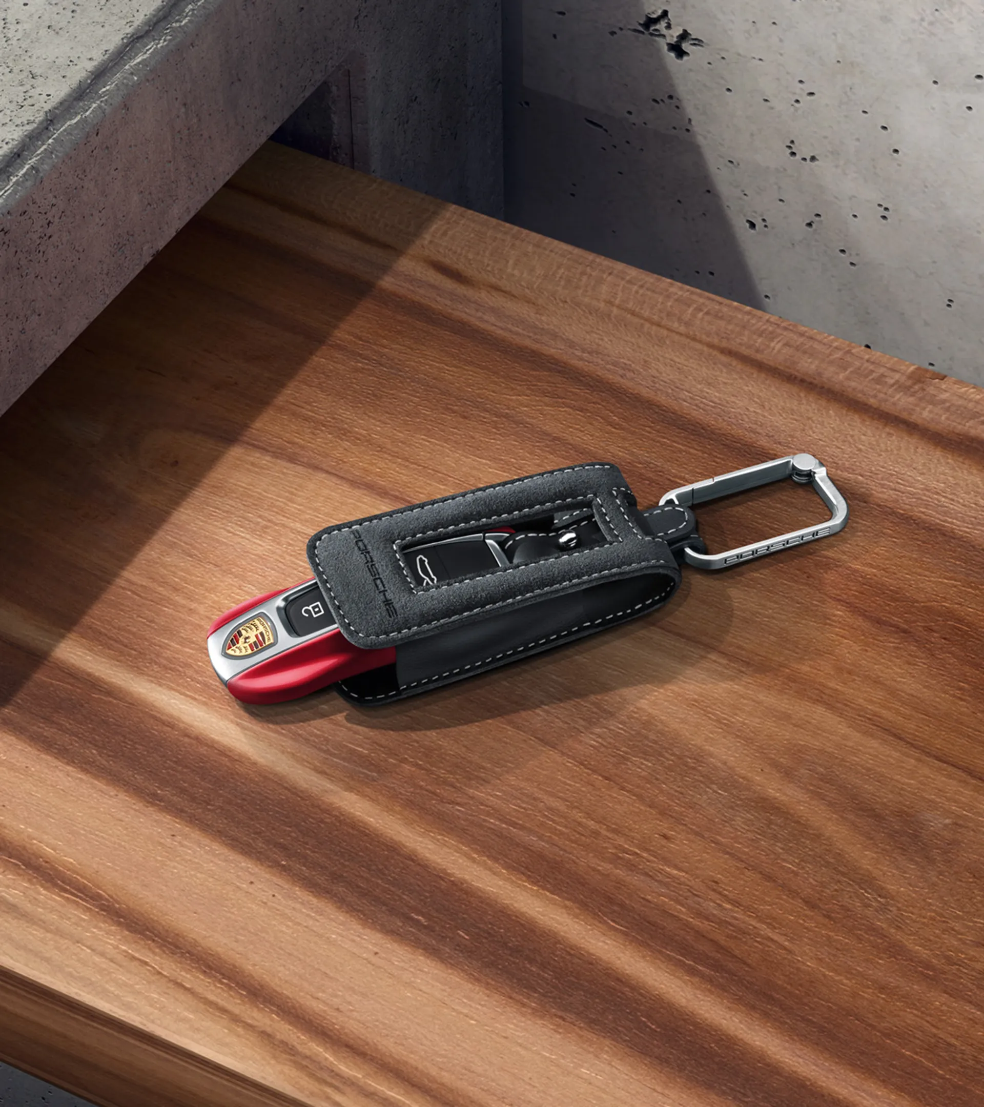 Le cordon et les bandes latérales sont en cuir noir. Avec couture décorative aux couleurs sélectionnées et griffe « PORSCHE ».