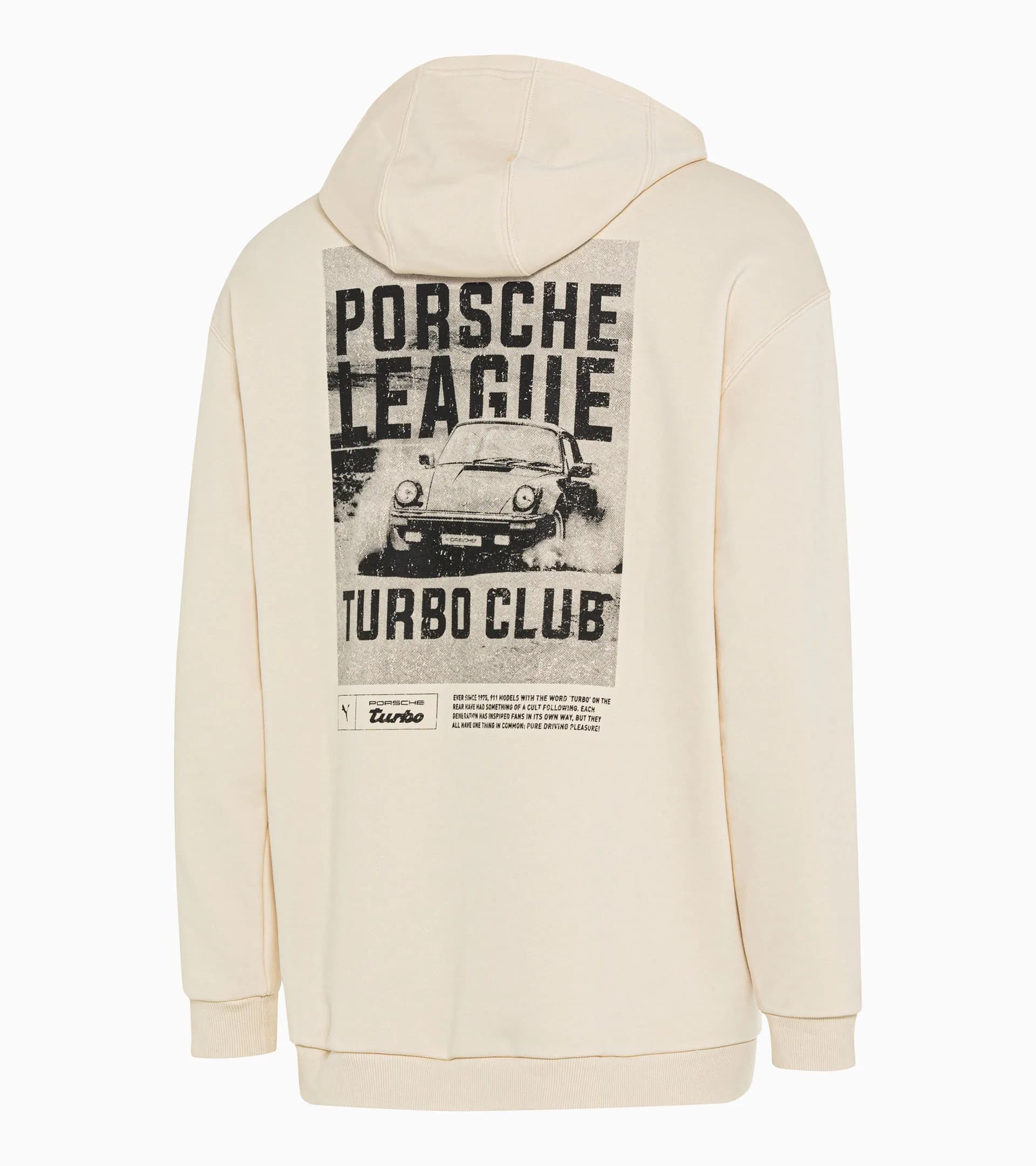 The graphic hoodie embodies the unmistakable Porsche DNA and combines iconic design with modern style. The soft French terry material with a light wash ensures a particularly comfortable feel, perfect for everyday use. While the ‘Porsche League Turbo Club’ print on the front pays tribute to motorsport heritage with a fresh, contemporary touch, the poster-inspired print on the back makes a strong visual statement and lends the design additional dynamism.