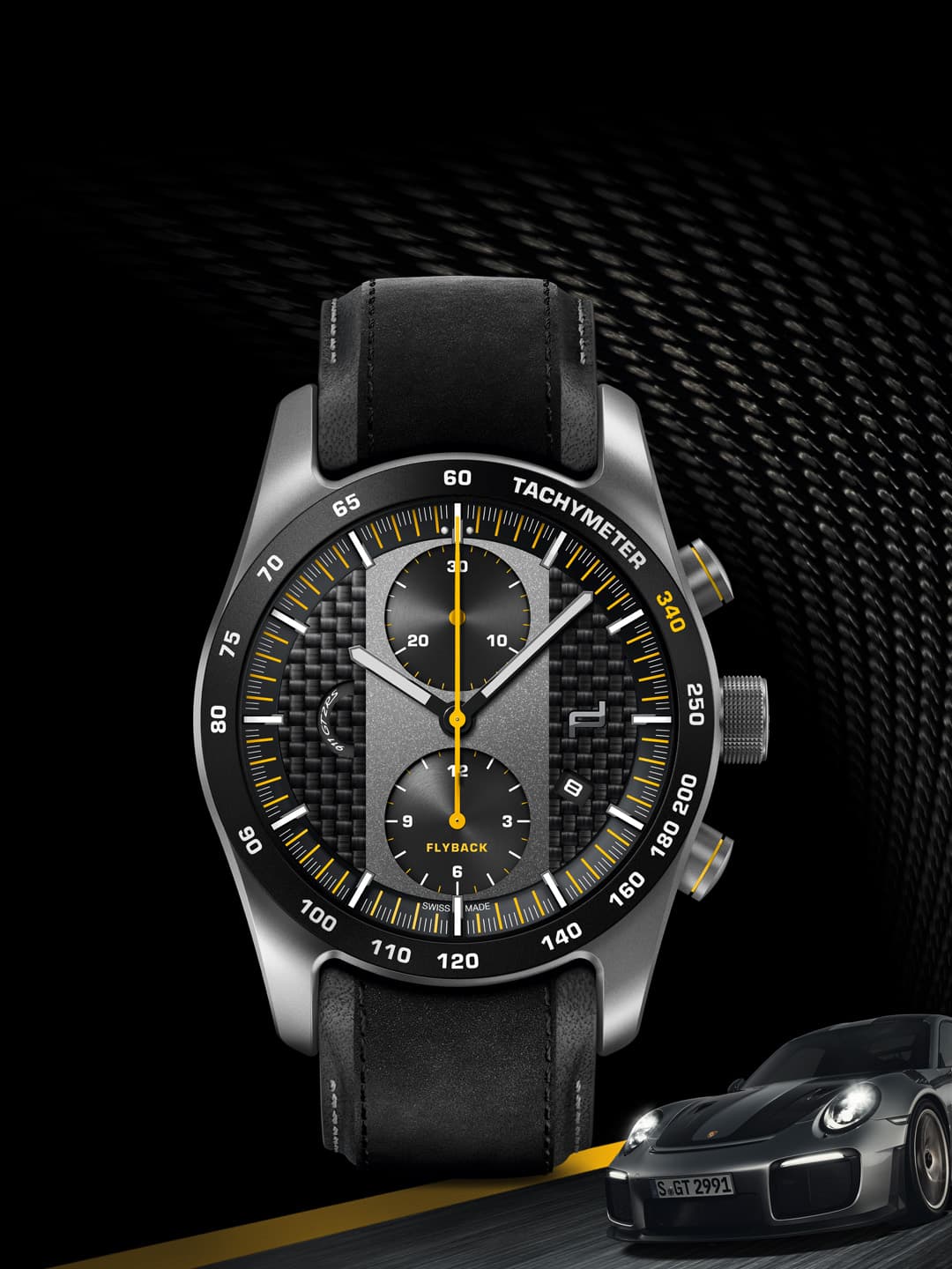Owners of GT models, special models or Exclusive Manufaktur models can have their personal Porsche Design Chronograph exclusively manufactured to match their sports car. The individual and unmistakable features of the respective Porsche model are incorporated and transferred to the design, materials and color scheme of the chronograph. The watches are strictly limited to the number of vehicles produced and are manufactured in the in-house factory according to customer orders.