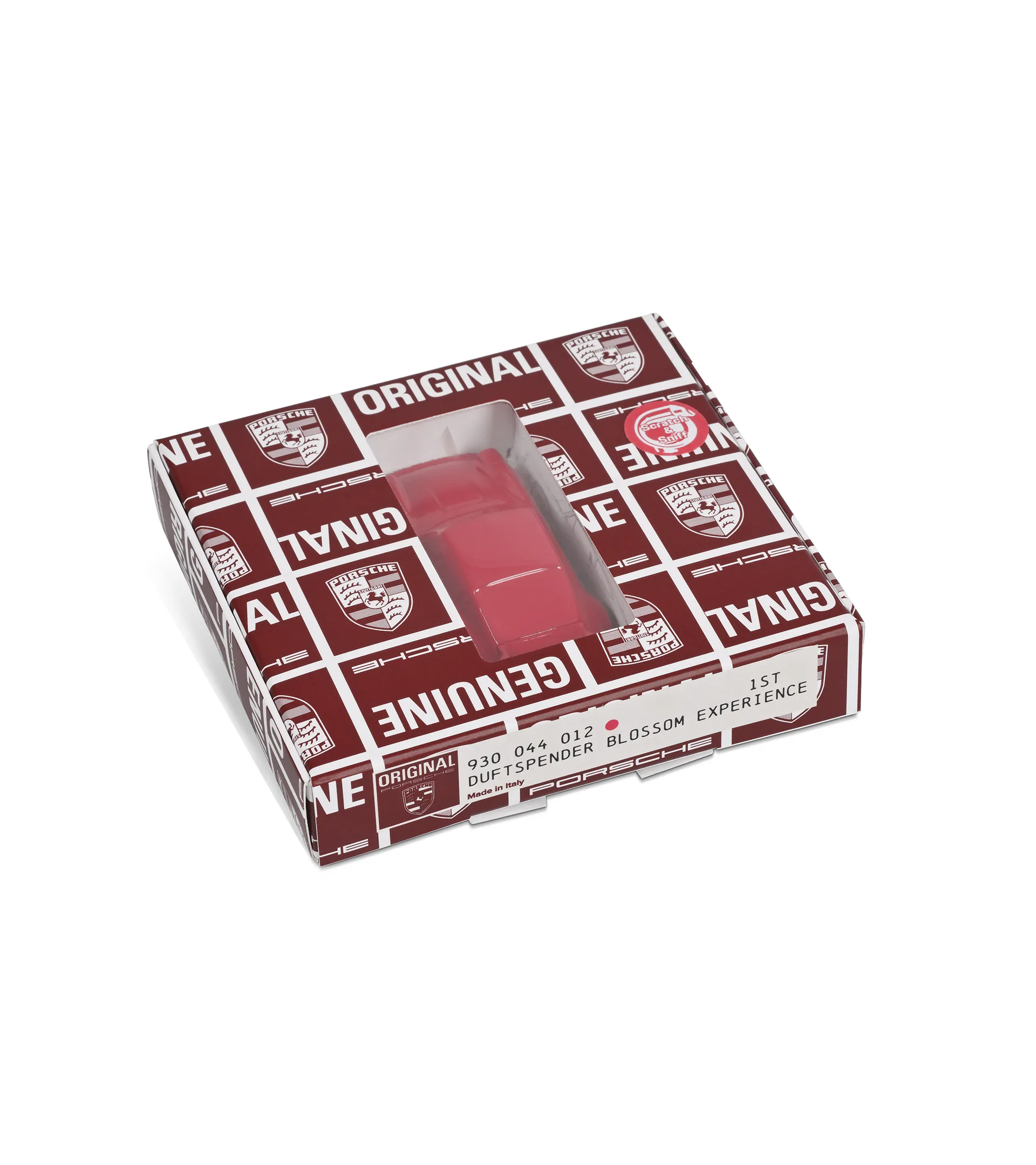 The ‘Blossom Experience’ car fragrance is a fruity and floral scent. The fragrance dispenser gleams in the ‘Fraise’ paint colour, which was once available for the 911 Turbo.