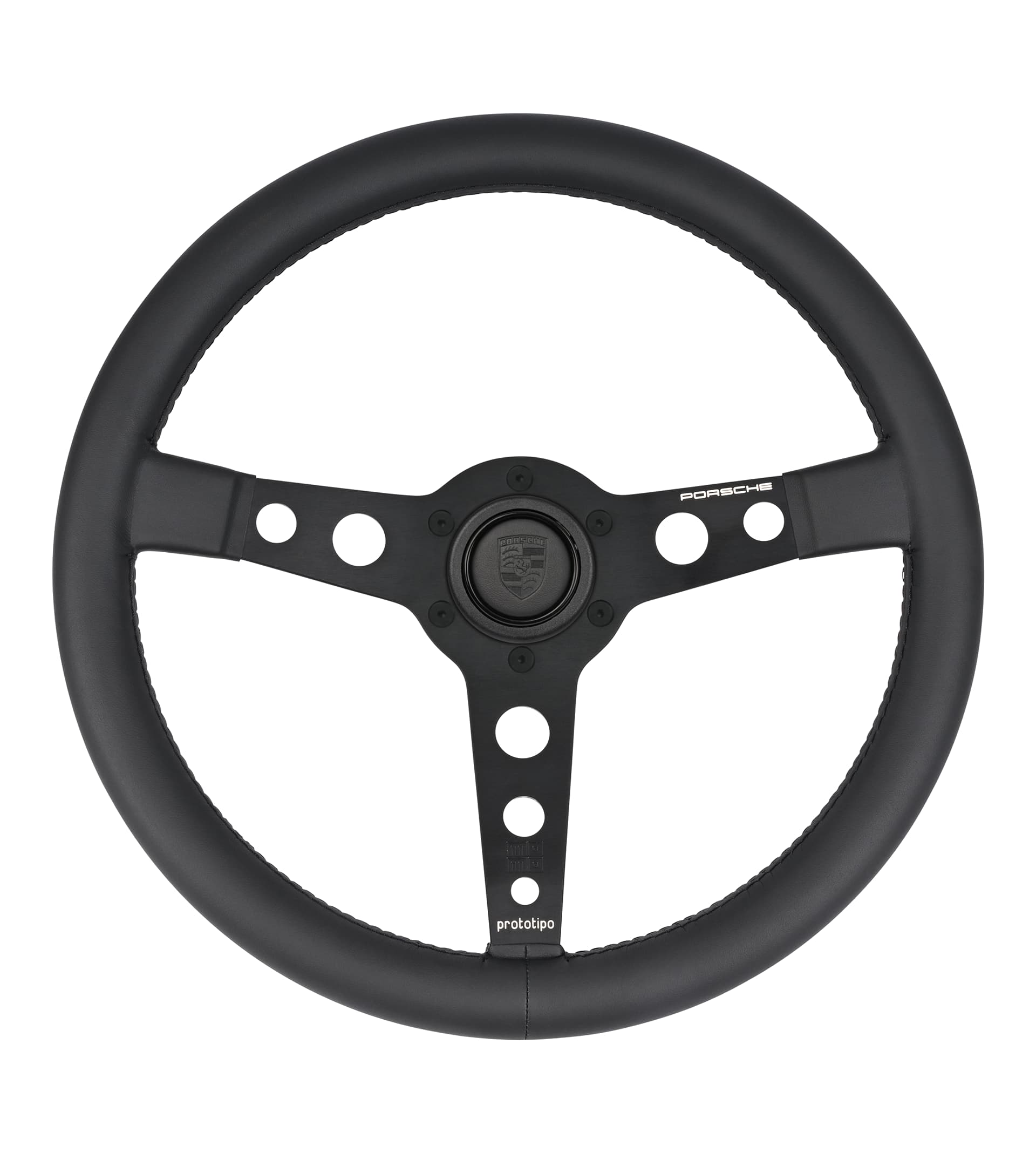 The name of the 'Prototipo' sports steering wheel derives from its use in the Porsche prototype race cars, where it was first used in the late 1960s. In particular, the limited space in the cockpit of these race cars made a steering wheel with a small diameter necessary.