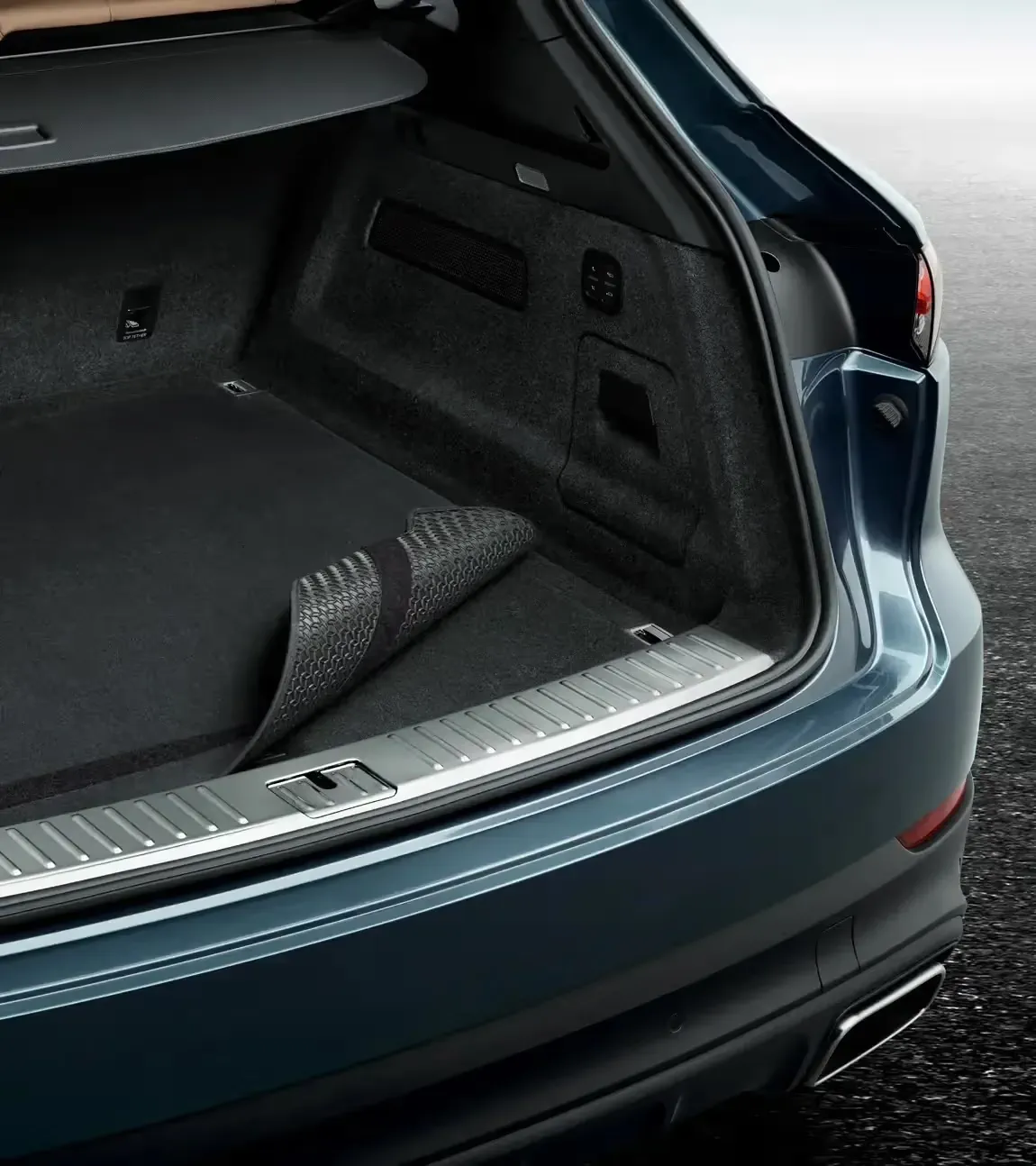 Reversible luggage-compartment mat in truffle brown with Nubuk surround including loading sill protection.