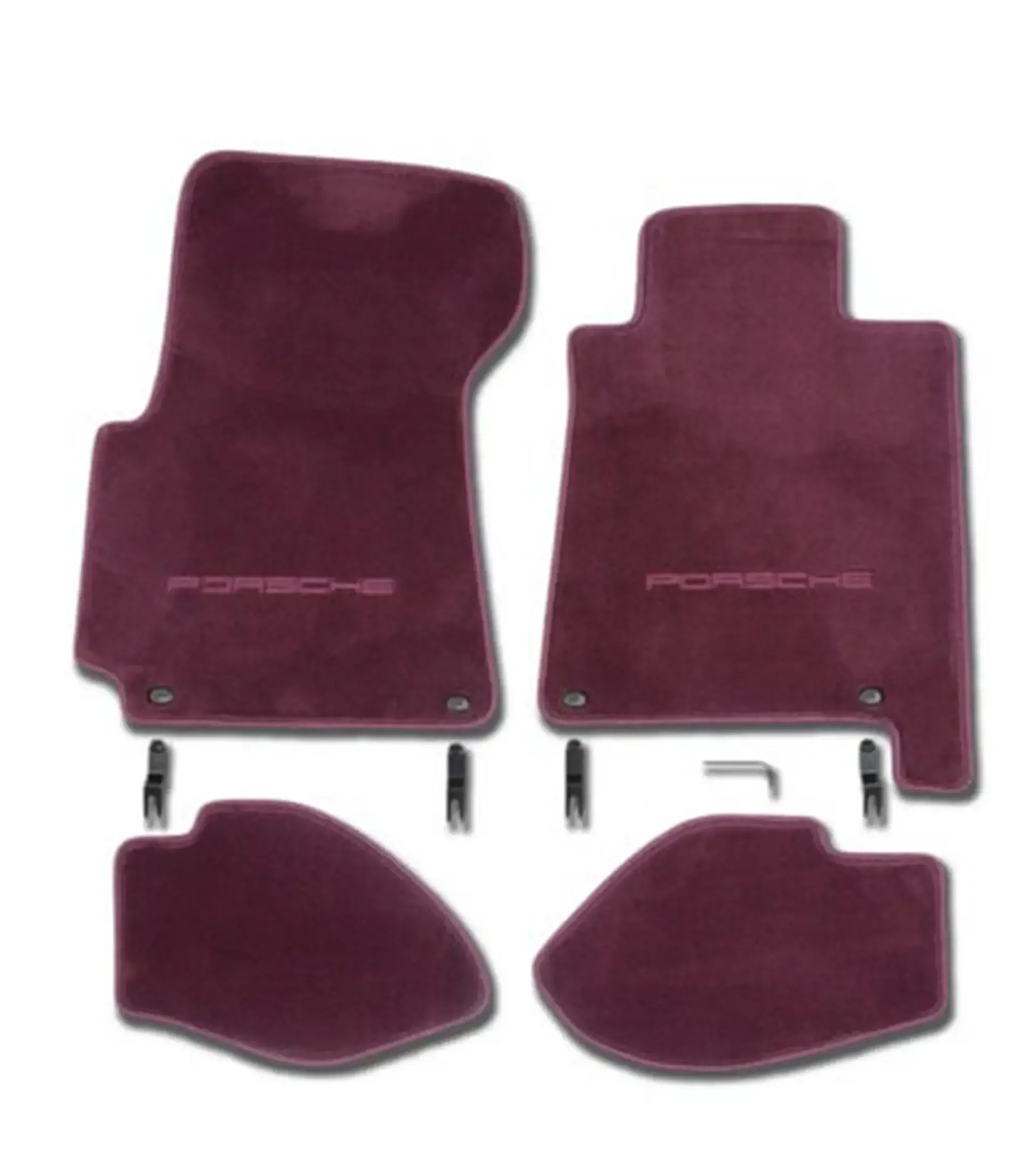 Set of four floor mats in Magenta for right-hand-drive vehicles, including fastening materials; suitable for Porsche 928 S4/GT and GTS from years of construction 1987 to 1995.