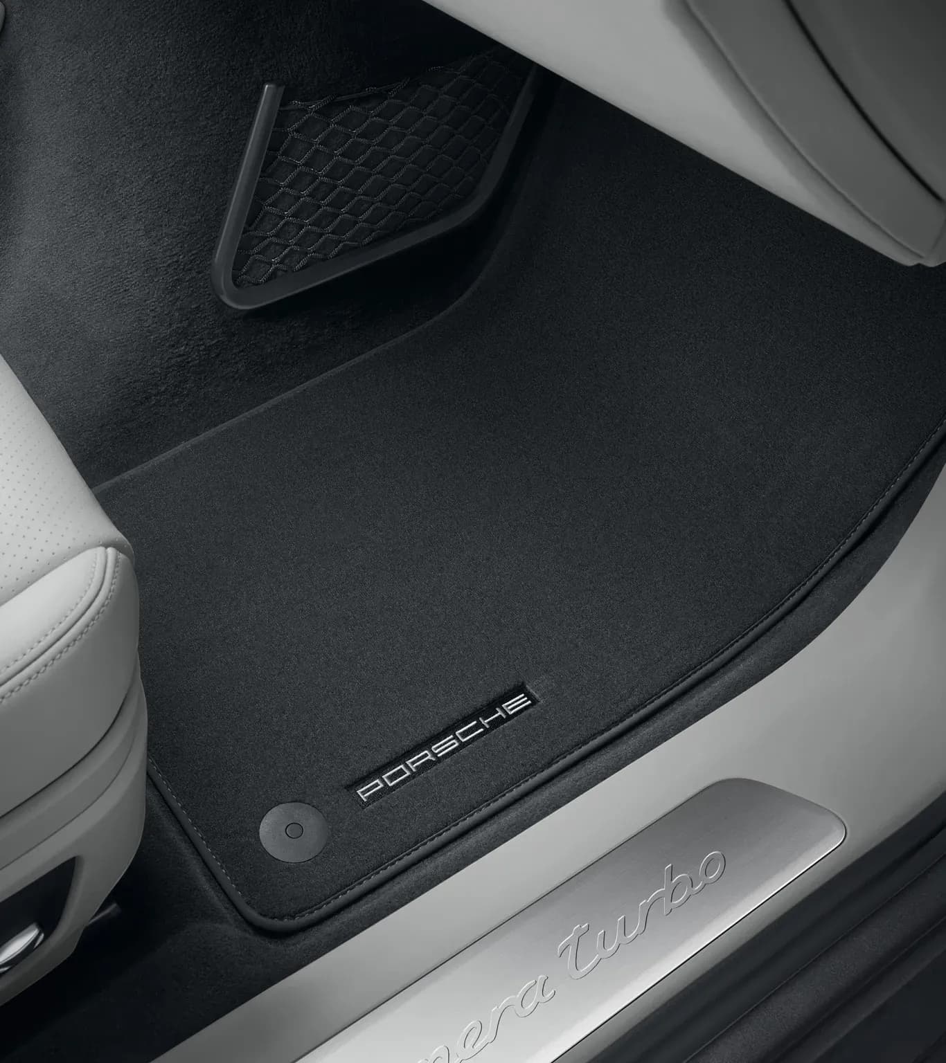 Four-piece set, in selected interior colours, with nubuck edging and embroidered silver „PORSCHE“ logo.