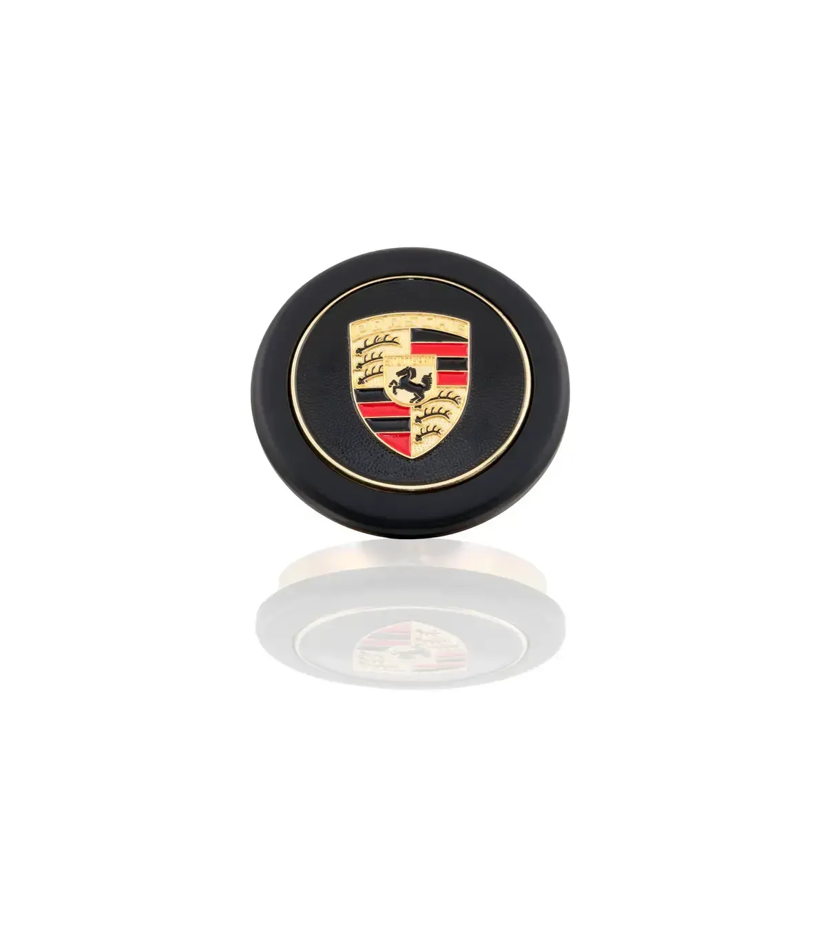 Coprimozzo nero con stemma Porsche colorato impresso.