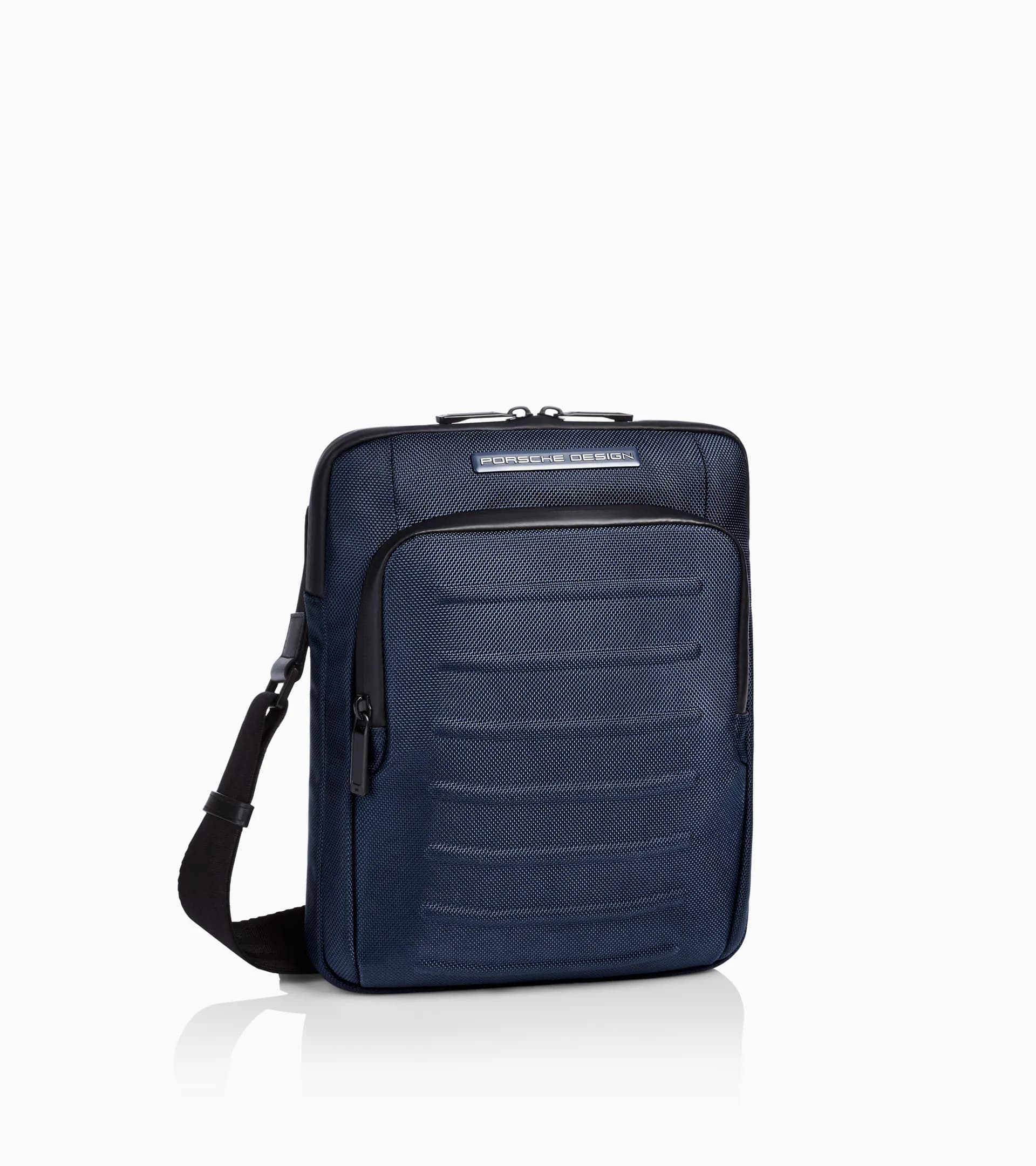 Borsa a tracolla compatta di Porsche Design in materiale idrorepellente. Nello scomparto principale è possibile collocare un tablet.