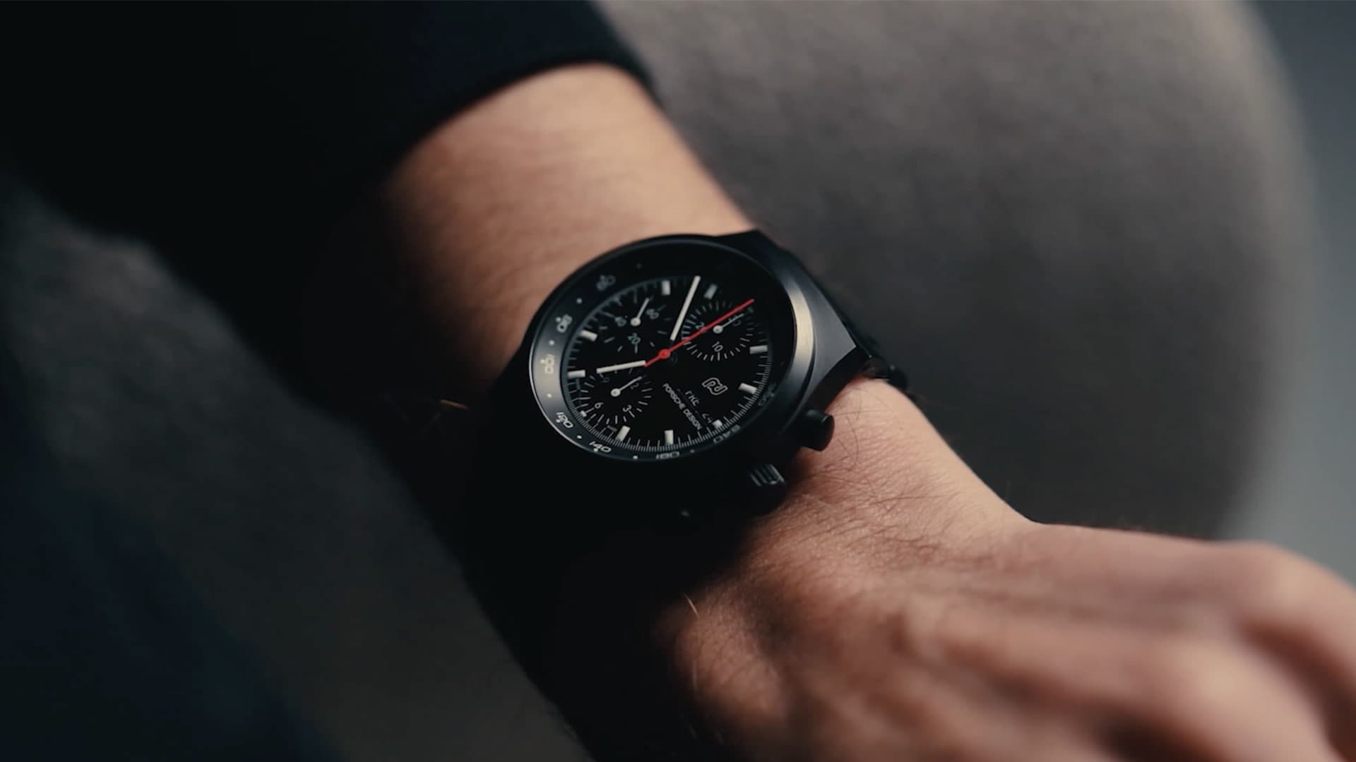 Il Chronograph 1 – All Black Numbered Edition rimane fedele alla tradizione del modello originale del 1972 progettato dal Prof. Ferdinand Alexander Porsche. Realizzato in Svizzera, l'orologio ispira coloro che, come Orlando Bloom, condividono le sue due grandi passioni: ingegneria automobilistica e orologeria.