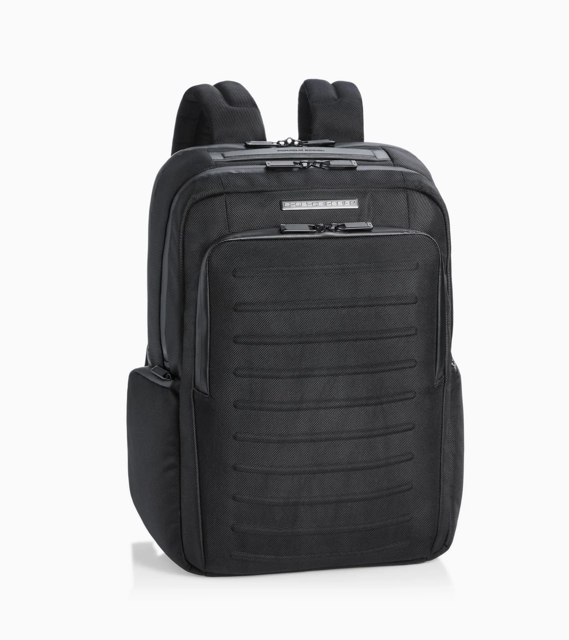 Spacious Porsche Design backpack made from water-repellent material. With laptop compartment and adjustable straps.