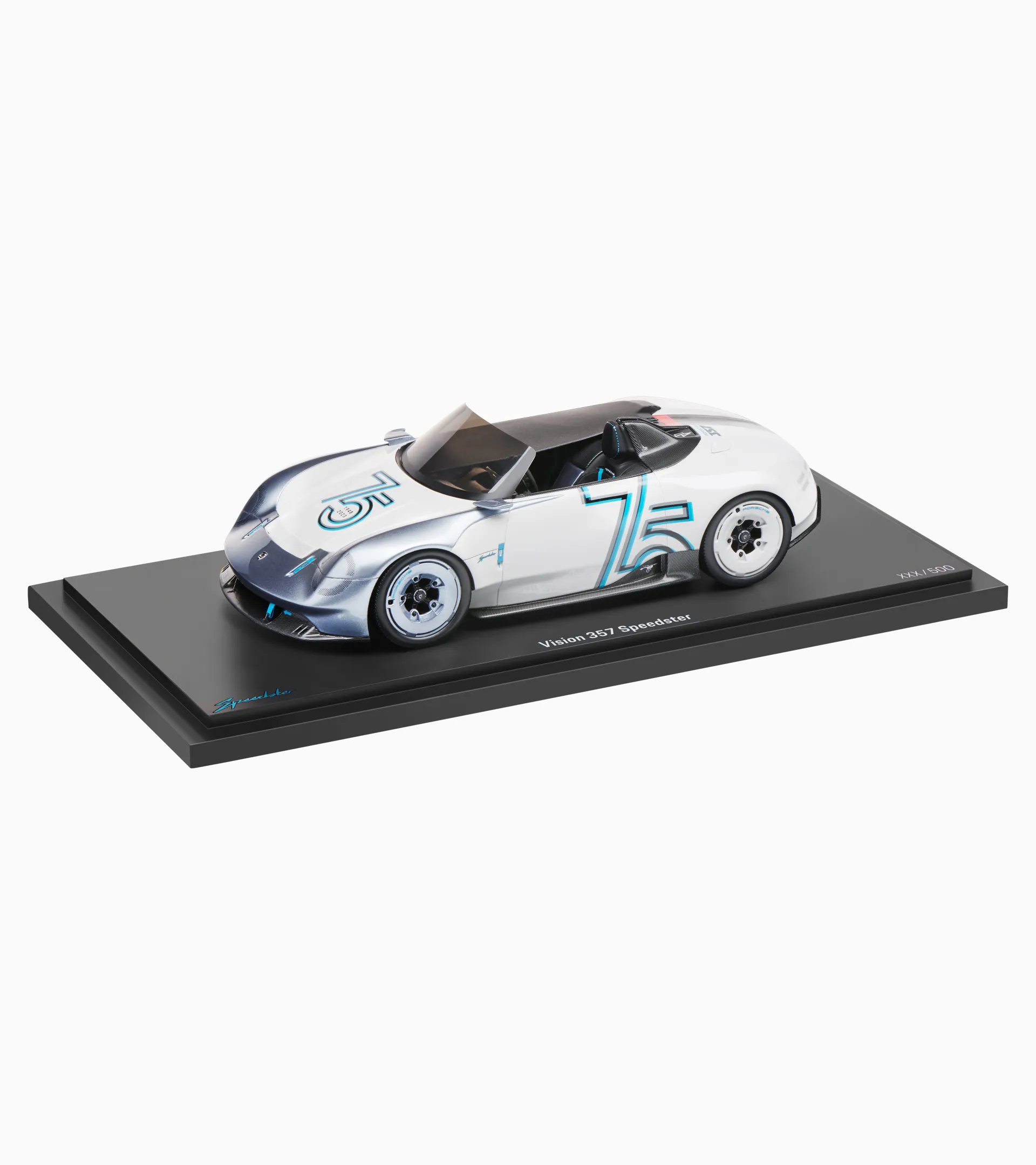 Ce modèle exclusif du Porsche Vision 357 Speedster, réalisé à l’échelle 1:18, se distingue par son souci du détail et constitue une pièce incontournable de toute collection. L’emballage fourni en fait également un cadeau idéal pour tous les passionnés de Porsche. Composé de résine. Extérieur Blanc, intérieur Noir.